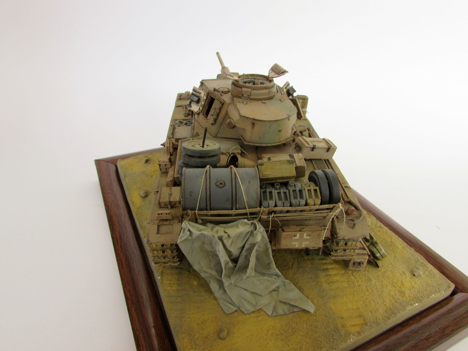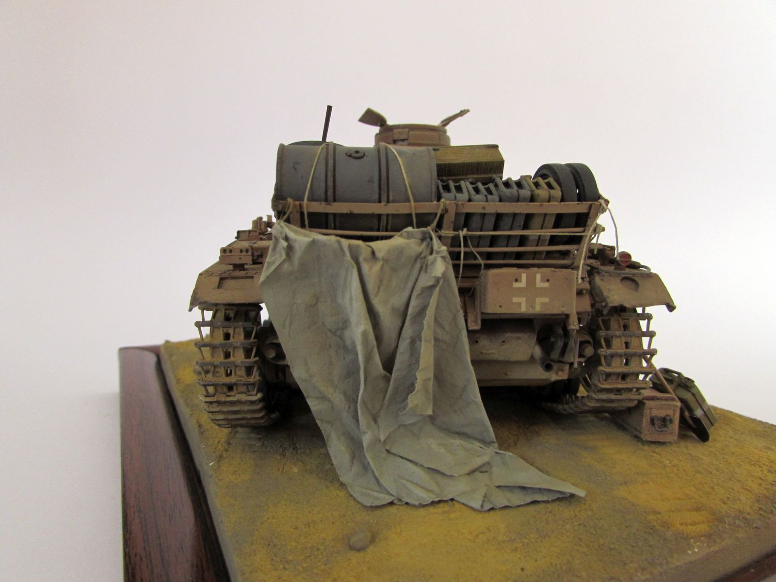 Модель изготавливалась для дальнейшего использования на диораме, поэтому на ней изображены следы двух попаданий в башню, а скарб изображен в процессе разгрузки. Брезент откинут.