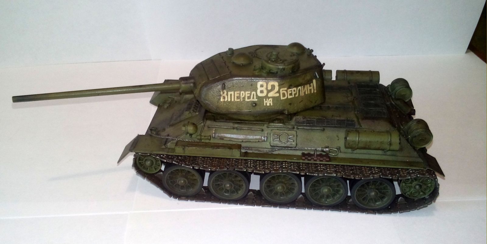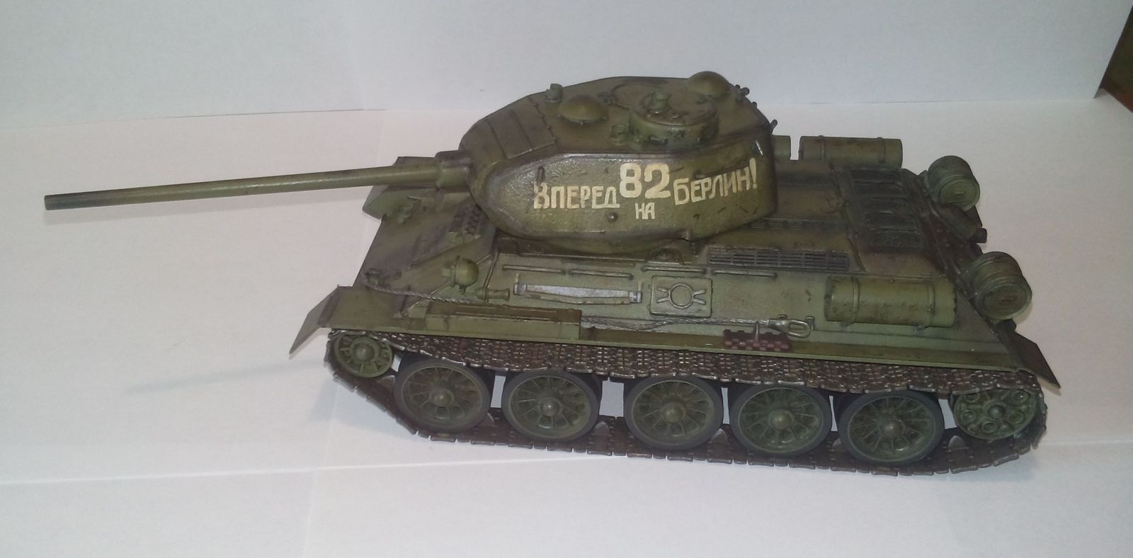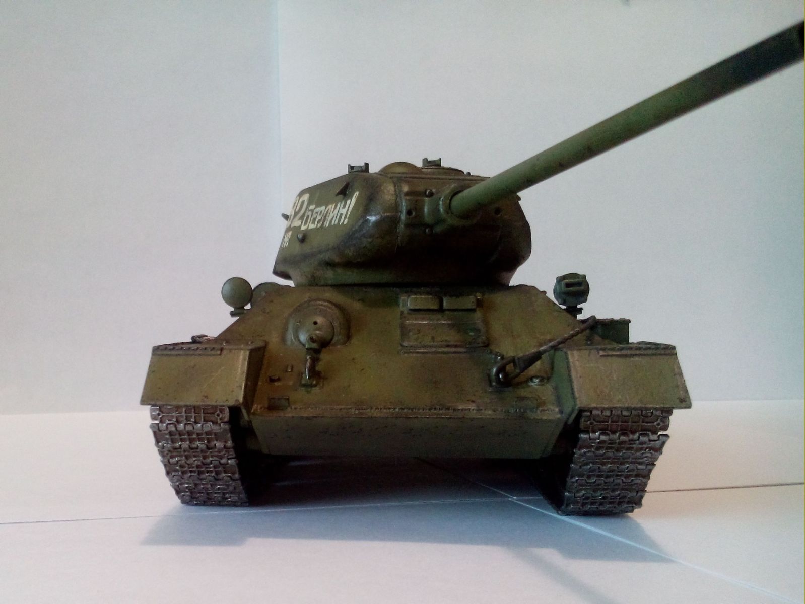...На Берлин этот танк может поехать разве что из ГДР. Машина,по признакам,послевоенного периода.Учите мат.часть,прежде,чем строить Т-34.