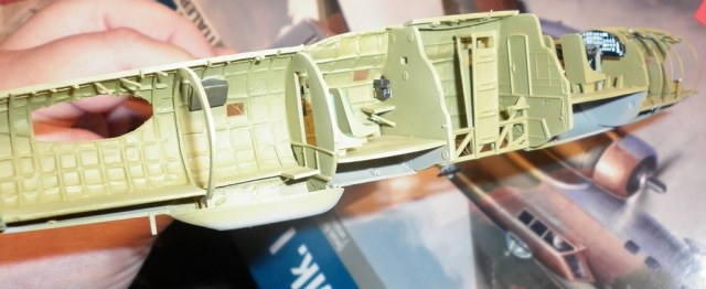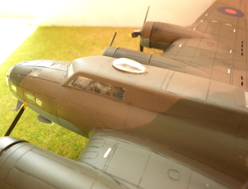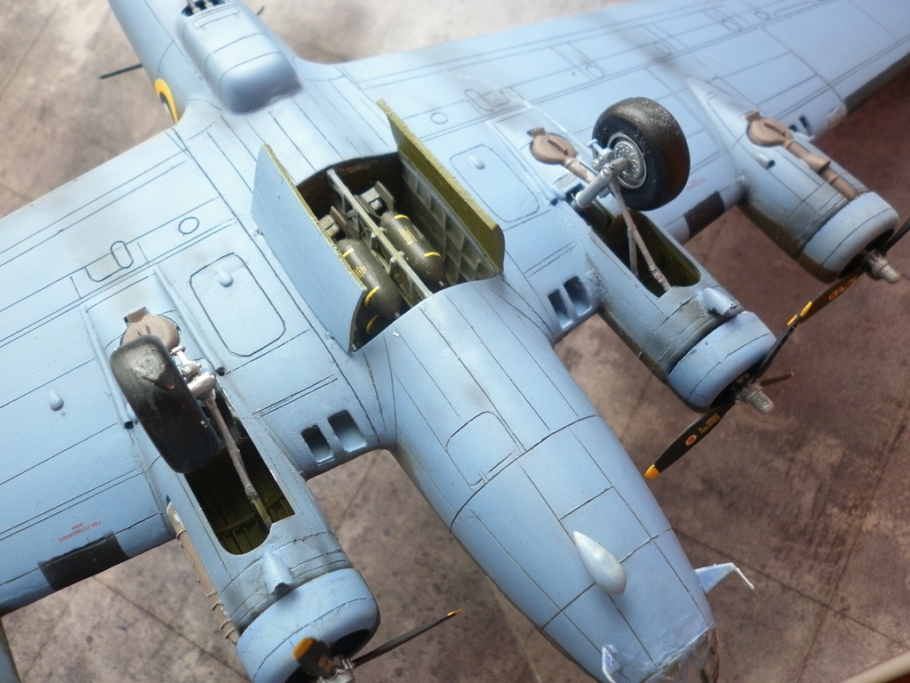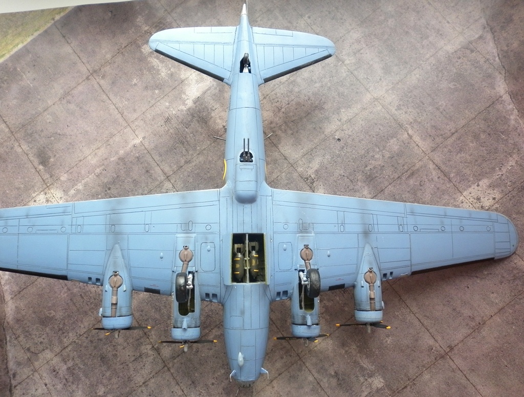 Вообще, за исключением некоторых дефектов , модель мне нравится. Недостатки которые я вижу :следы демонтажа остекления штурмана, мелкие окошки,отсутствие доработки пулемётов, следы склейки стоек и подкосов шасси, отсутствует 1 декаль на лопасти, неровные ряды бомб в бомболюке, не совсем удались фары.