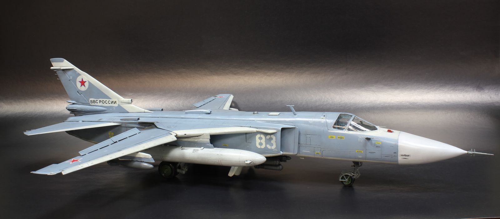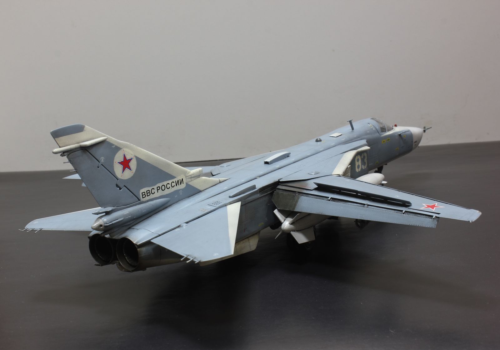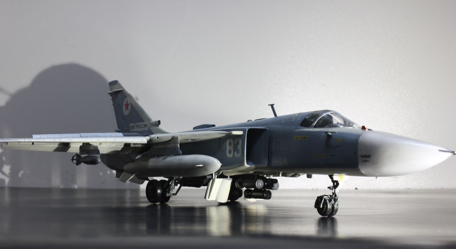 Решил отойти от поршневой авиации и попробовать собрать реактивную. Так совпало, что в период сборки погиб один из бомбардировщиков в Сирии. Решено было собрать борт 83.