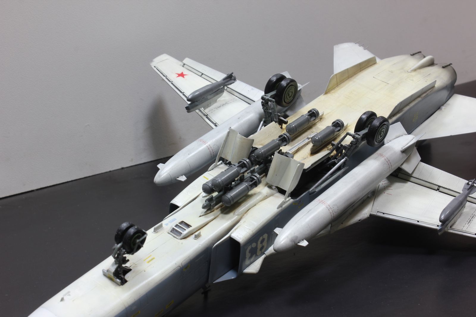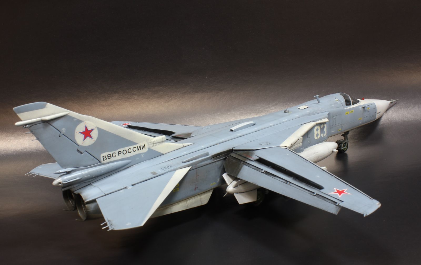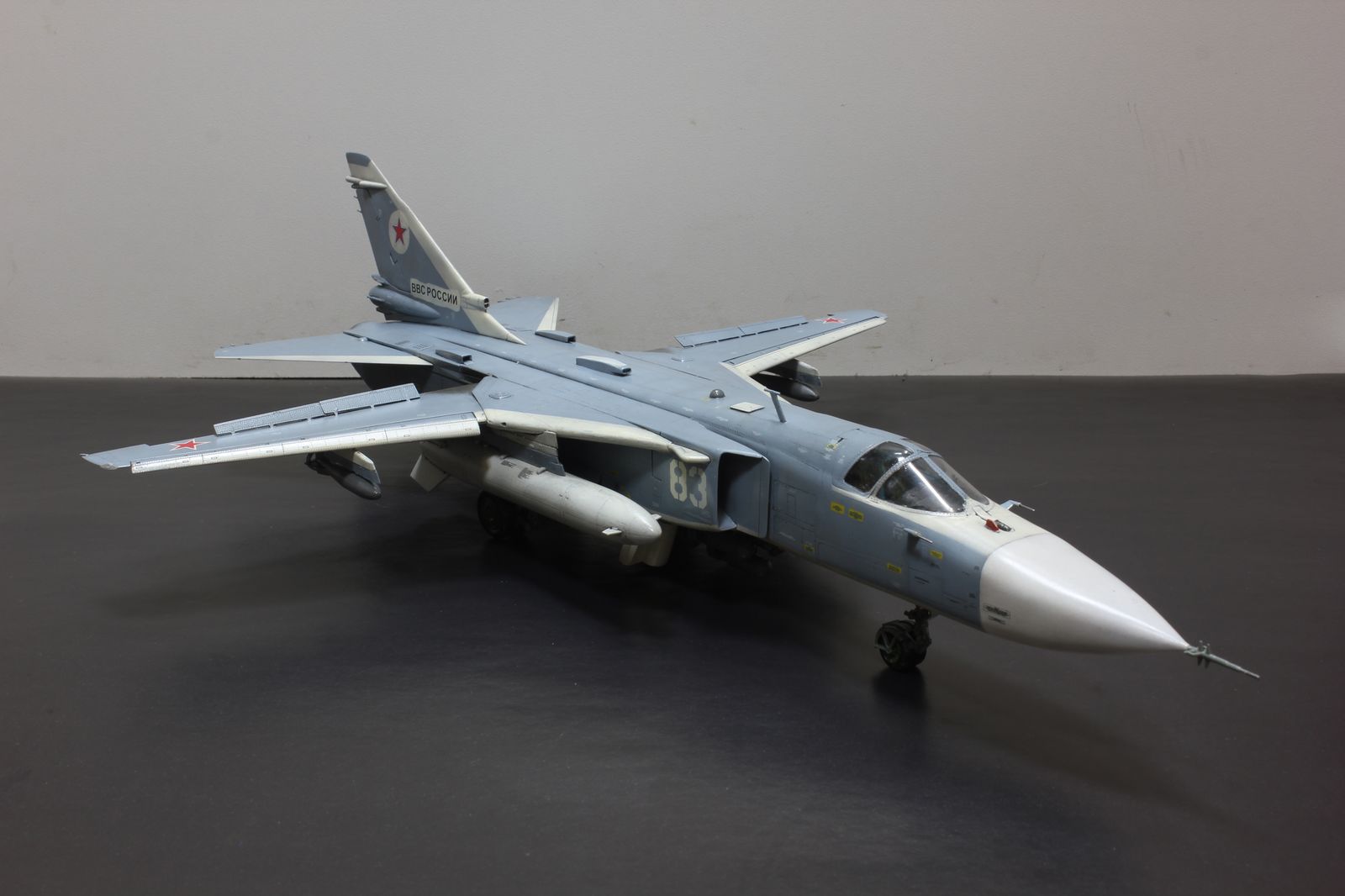 Решил отойти от поршневой авиации и попробовать собрать реактивную. Так совпало, что в период сборки погиб один из бомбардировщиков в Сирии. Решено было собрать борт 83.