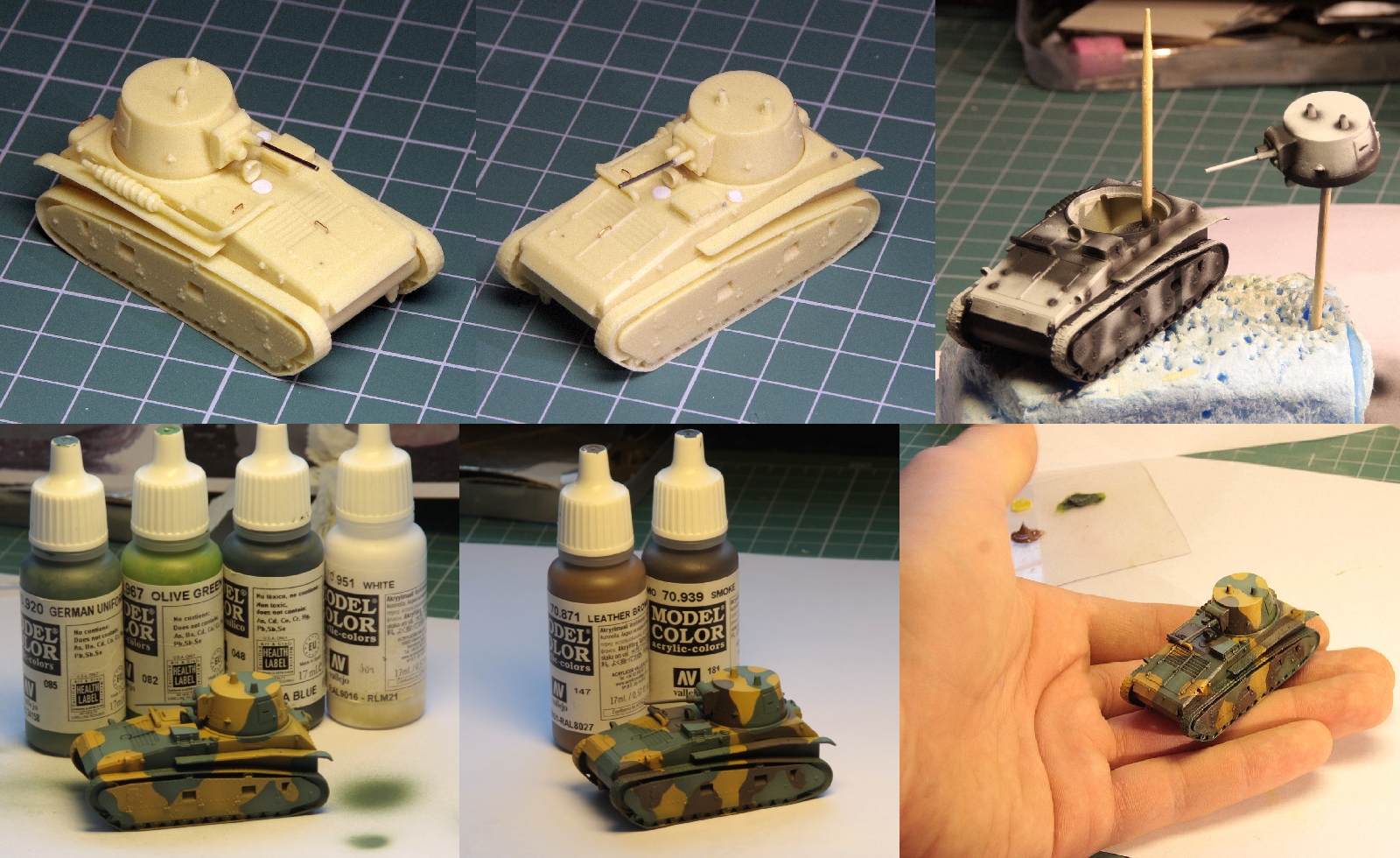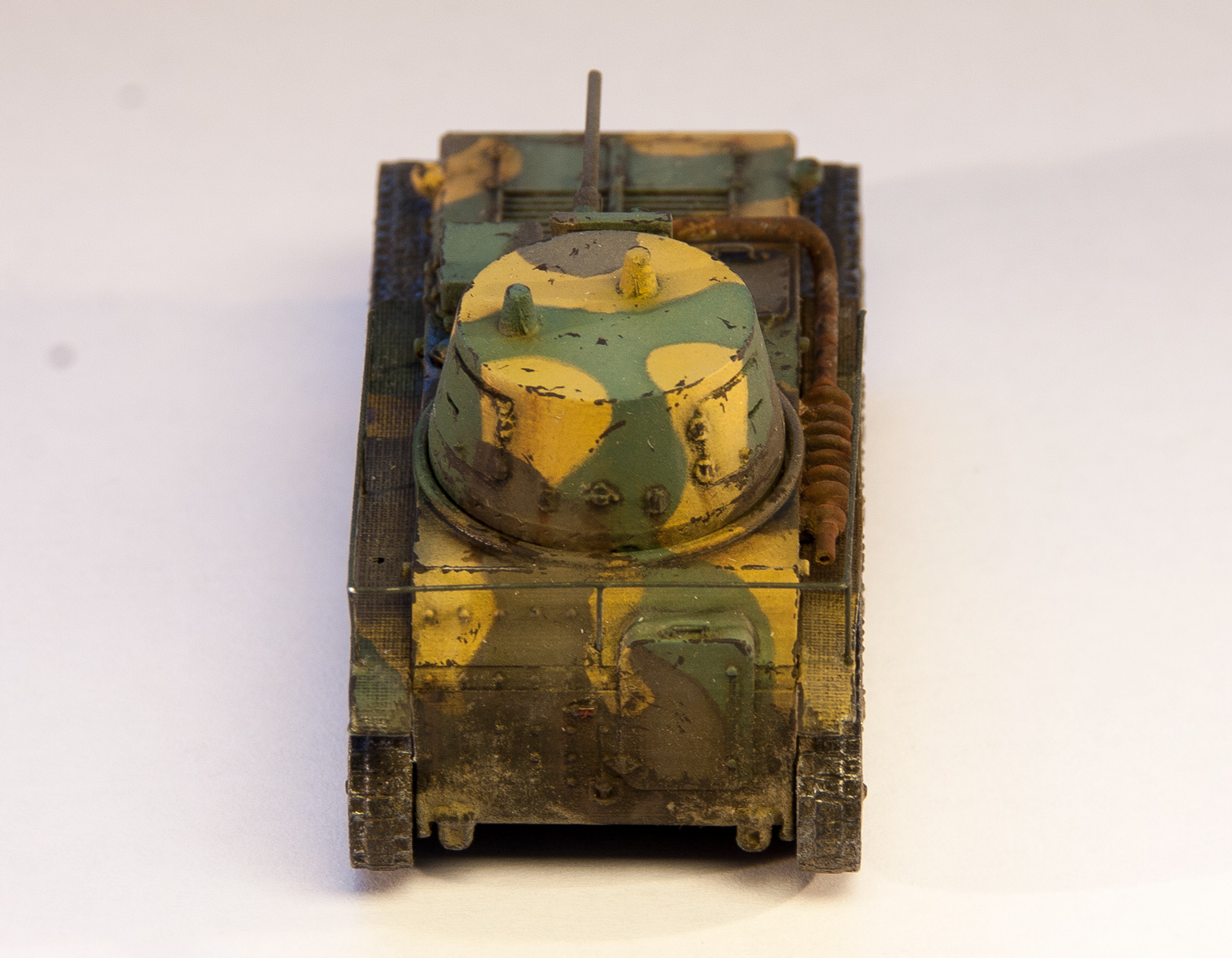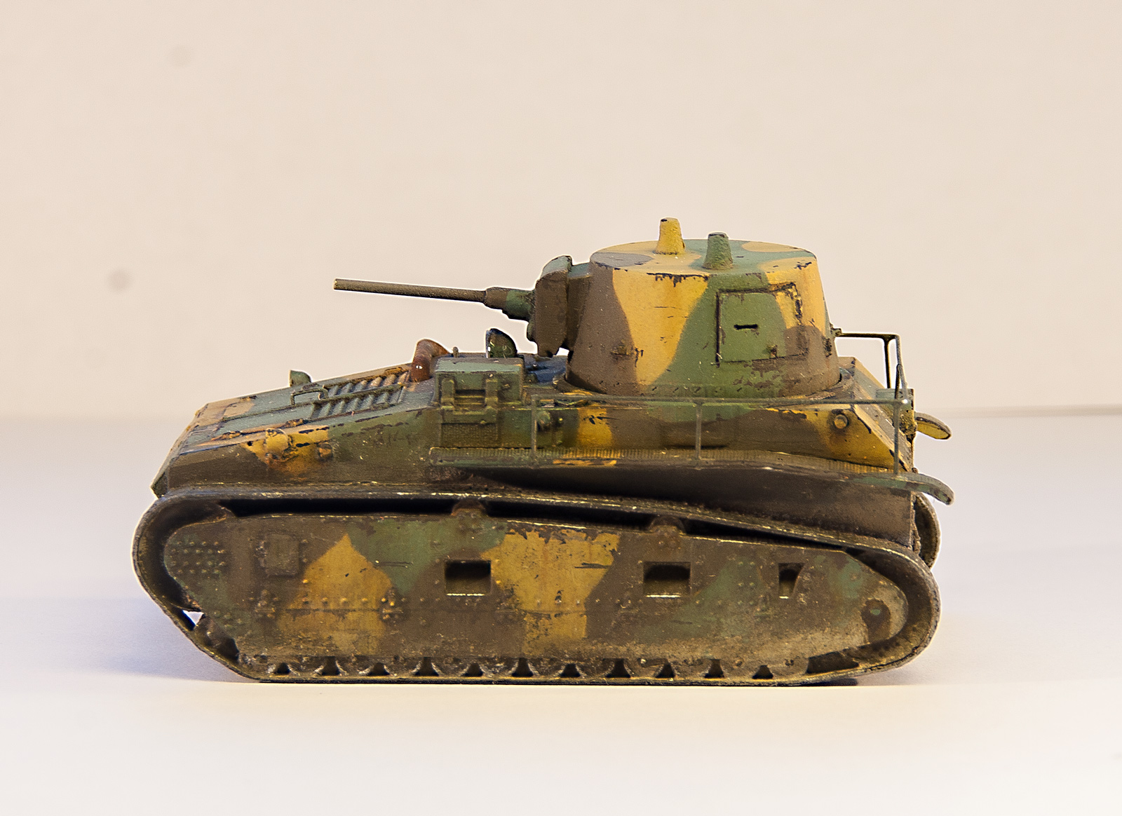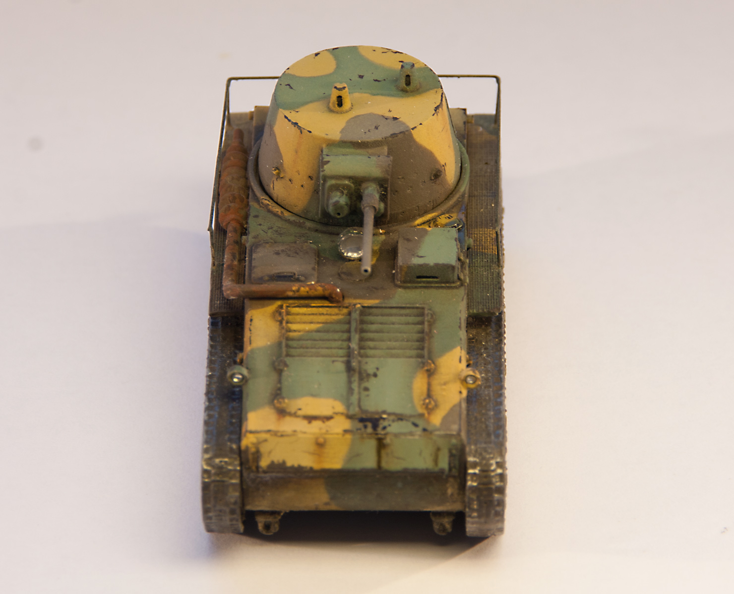 Прототип по фото покрашен в трехцветный камуфляж, поэтому предположил, что цвета были стандартными для немецкой довоенной схемы. Красил акрилами vallejo, смывка abt502+тиккурила. Фейдинг, подтеки смазки, топлива - abt502. Пигменты vallejo. Лаки model master.