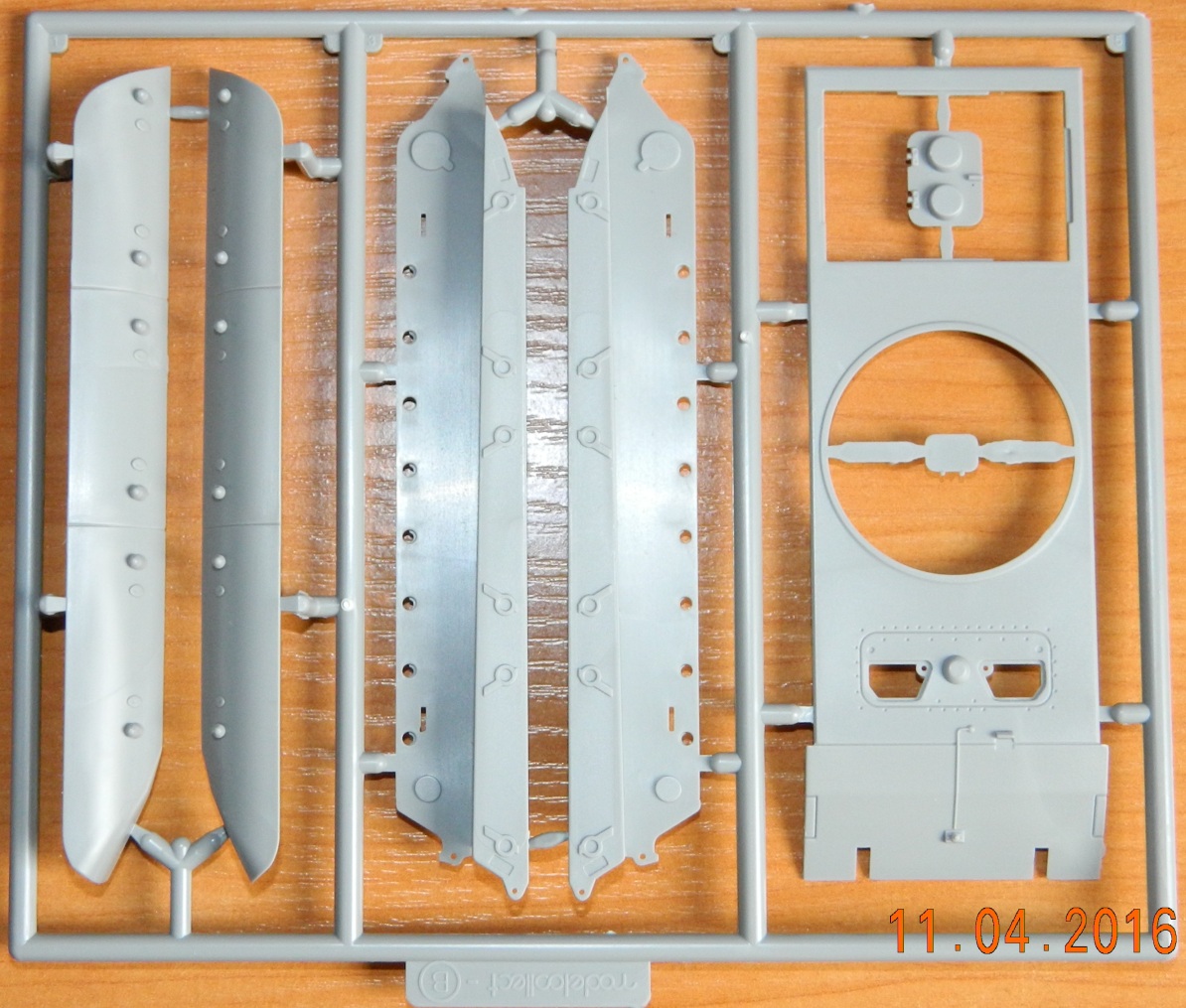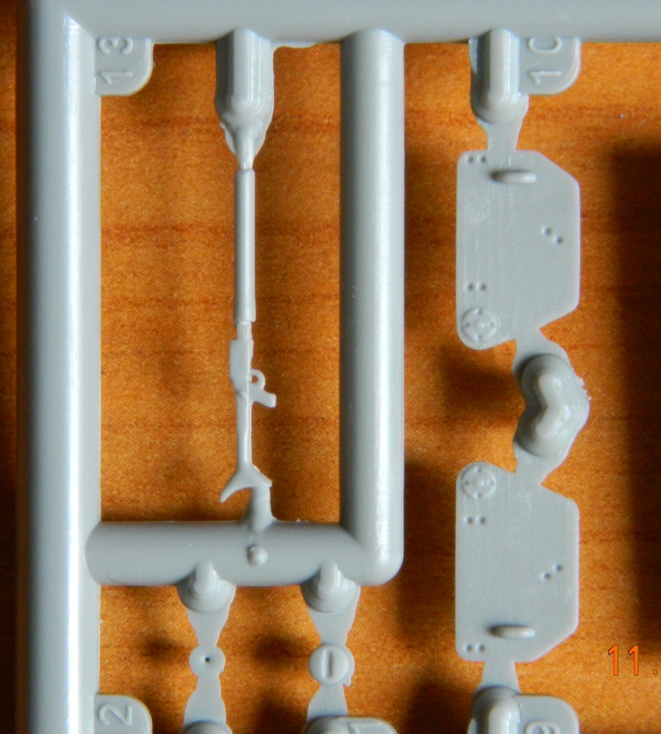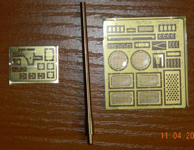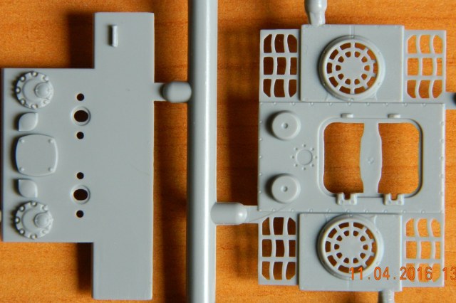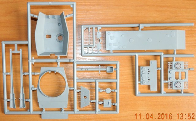 Качество литья на первый взгляд нормальное, а мелочи вылезут в процессе постройки. Порадовал ствол из двух половинок в альтернативу металлическому стволу и имитация двигателя, который в дальнейшем не увидеть. Шанцевый инструмент вообще отсутствует, я думаю фототравление VoyagerModel РЕ720011/72 замечательно зайдет.