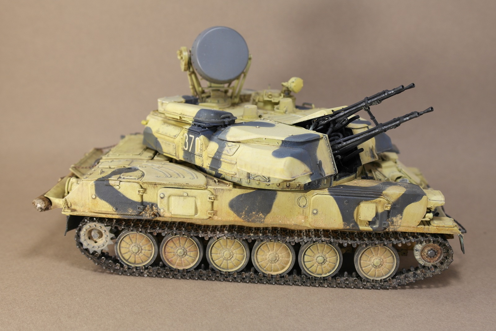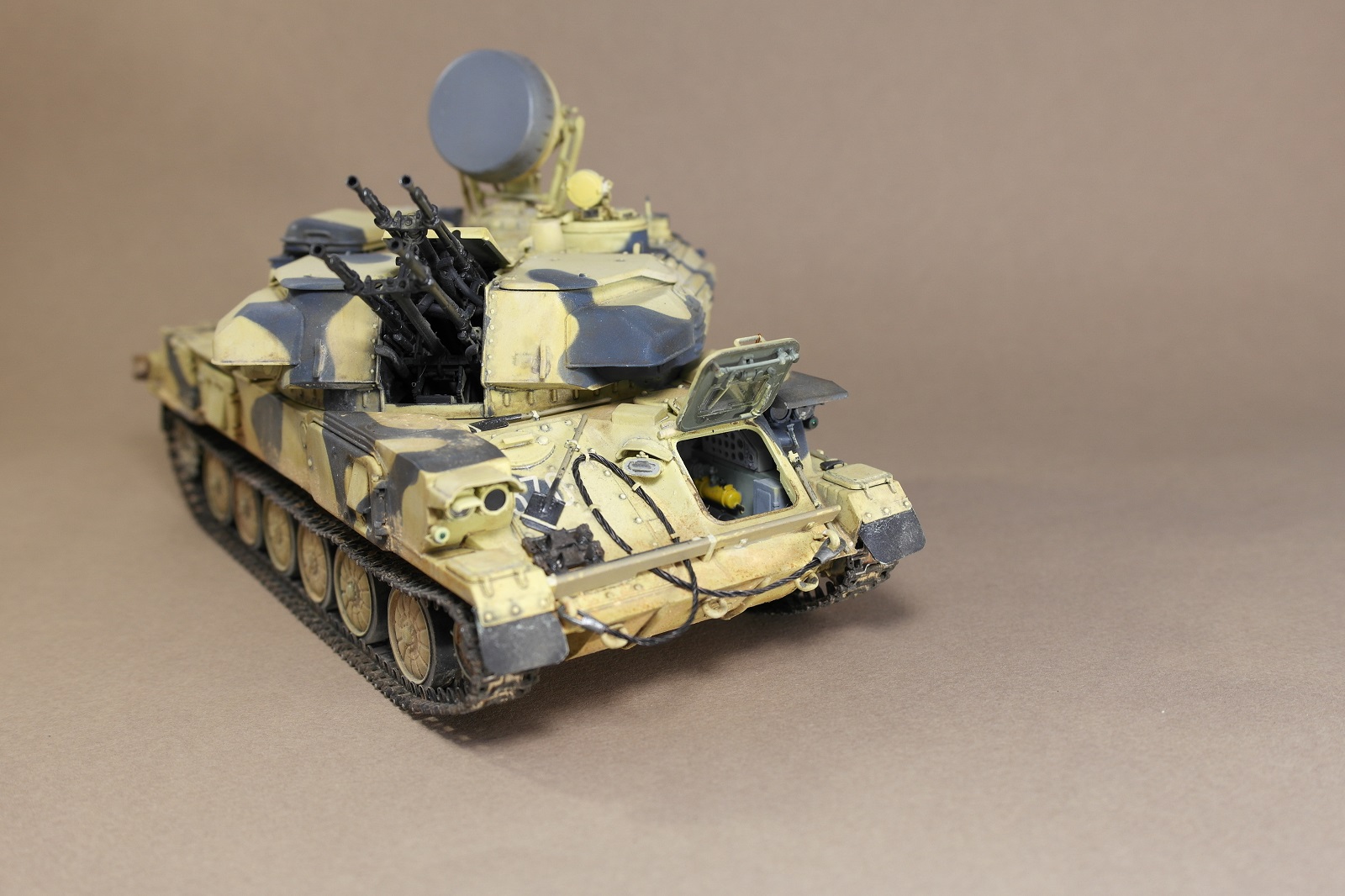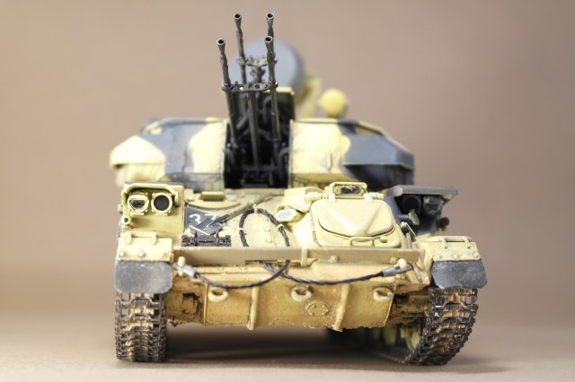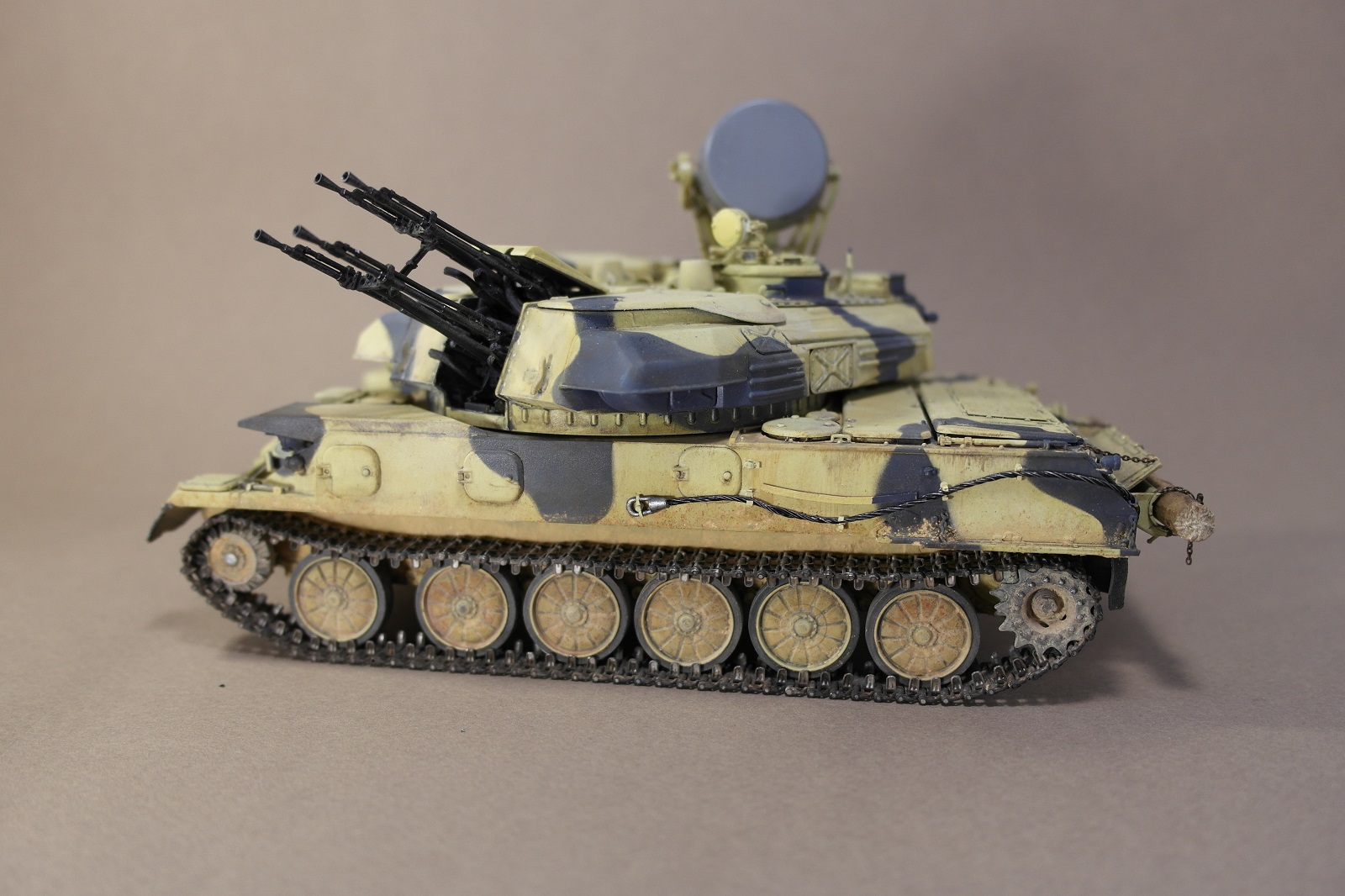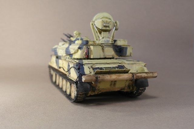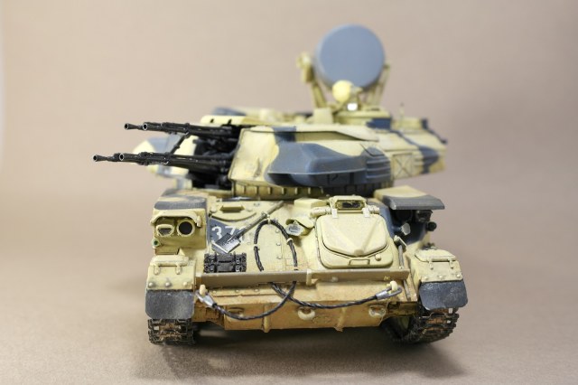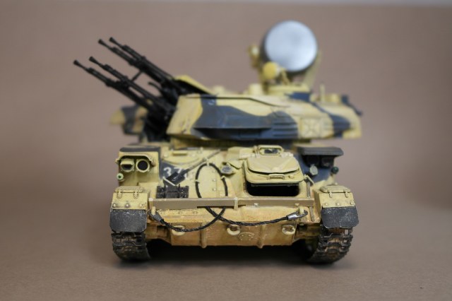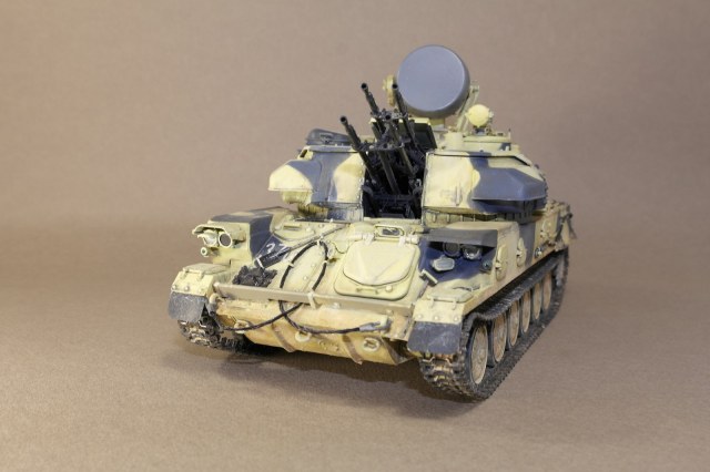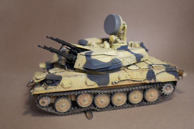 ЗСУ-23-4м"ШИЛКА" от многим известного производителя MENG MODEL.Набор собрался без особых проблем.Неприятное впечатление оставили траки,их заменил на MASTERCLUB.Родные троса тоже заменил,на верёвки.При покраске использовал акрил Vallejo по инструкции,но желтый цвет почему то не получился,высветлял маслом,немного пигмента.За качество фото извините.