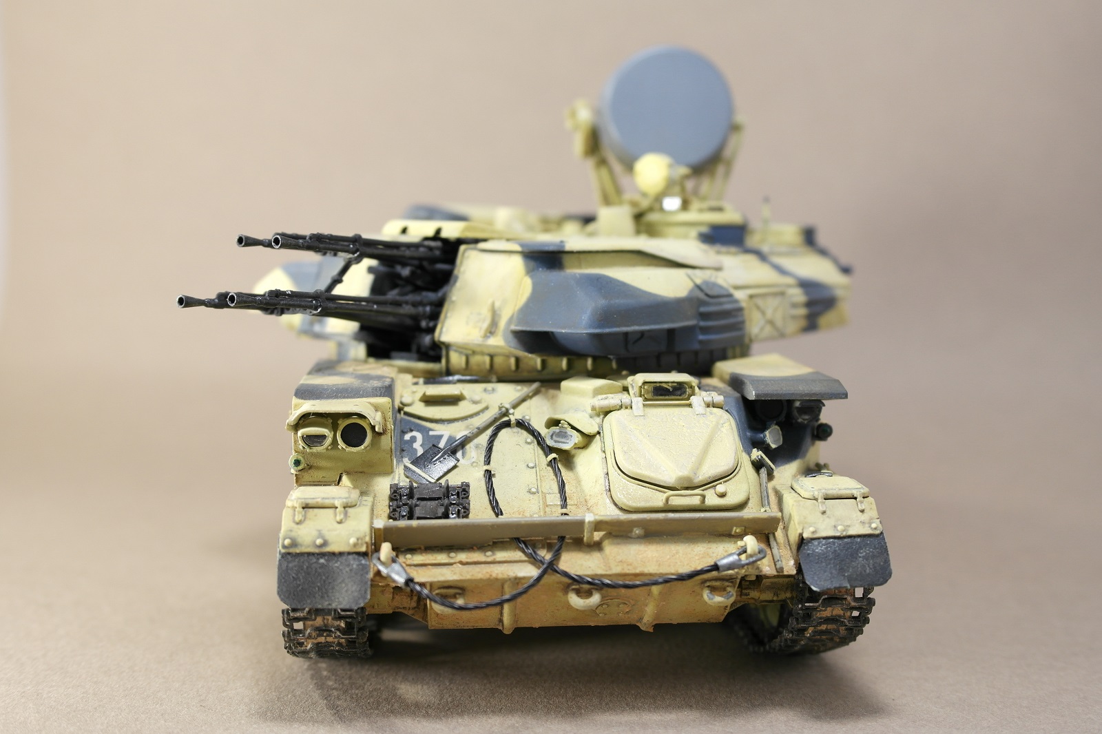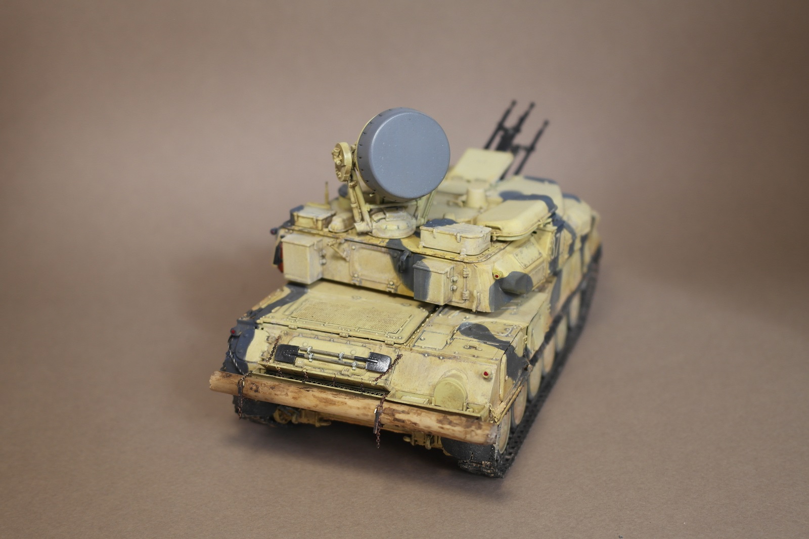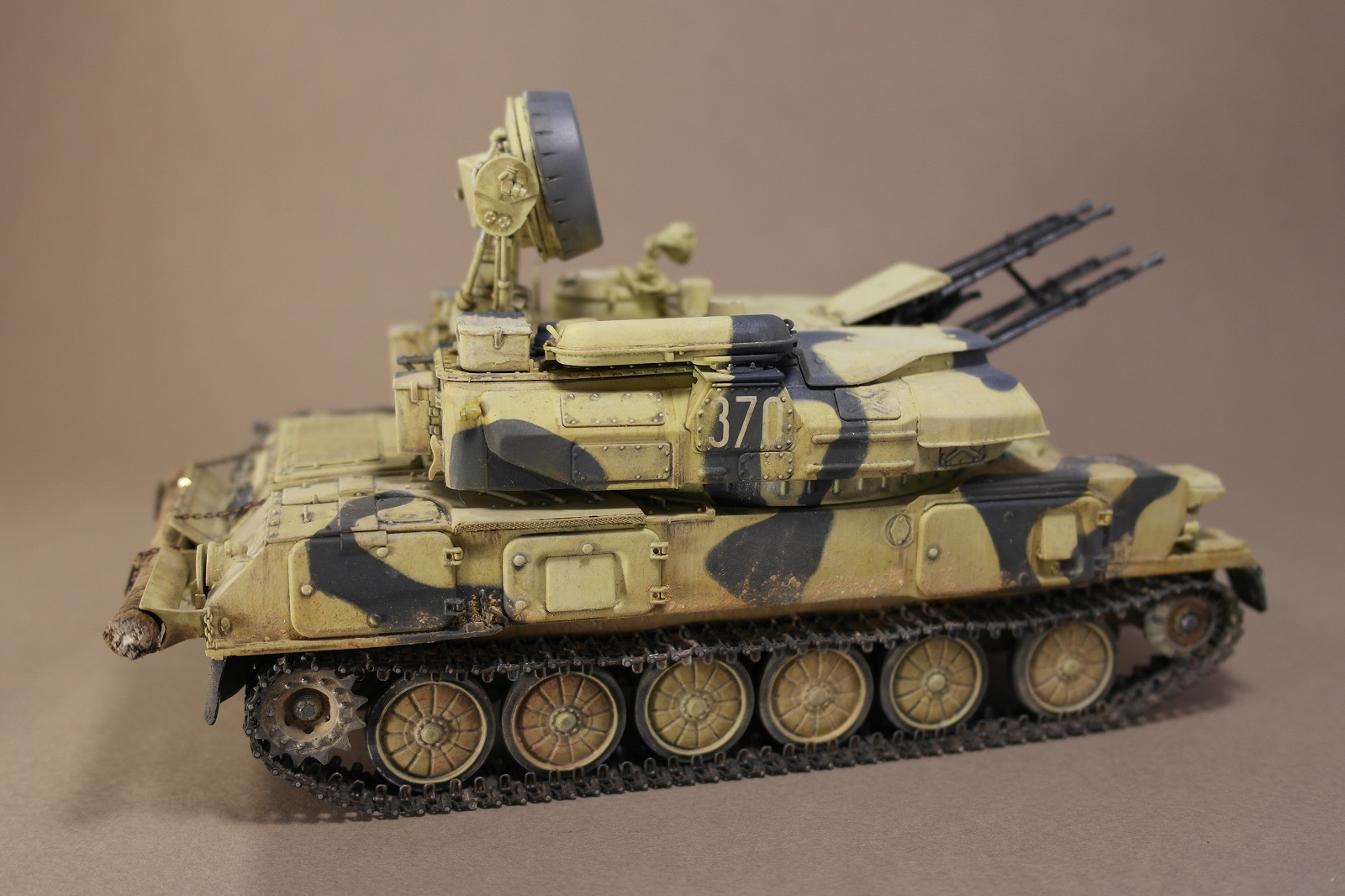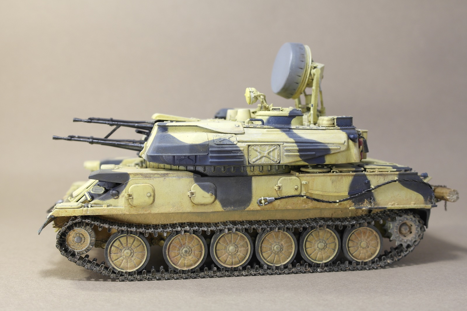 ЗСУ-23-4м"ШИЛКА" от многим известного производителя MENG MODEL.Набор собрался без особых проблем.Неприятное впечатление оставили траки,их заменил на MASTERCLUB.Родные троса тоже заменил,на верёвки.При покраске использовал акрил Vallejo по инструкции,но желтый цвет почему то не получился,высветлял маслом,немного пигмента.За качество фото извините.
