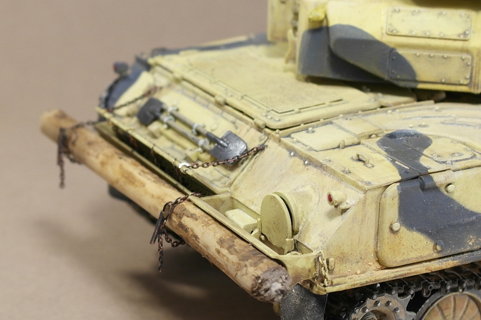 модель какая-то обезличиная...не хватает смывки и объема. Как тут уже говорили сильно похоже на 72-й масштаб...трос слишком толстый, б/н разве наносился на корпус в передней части? Тем более под лопатой его не видно