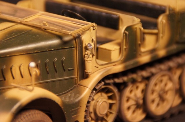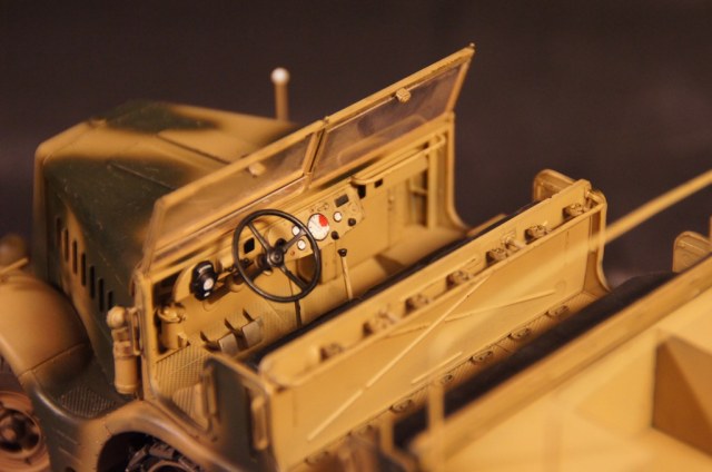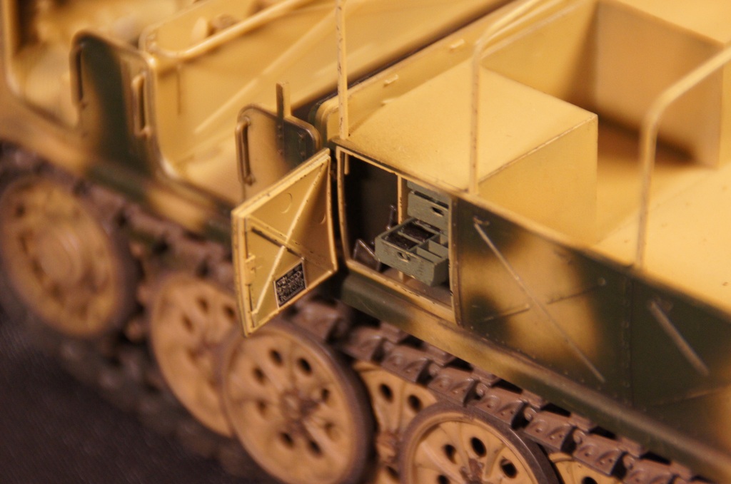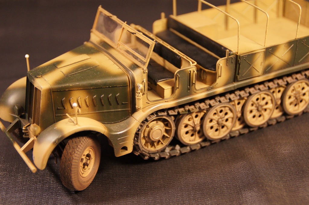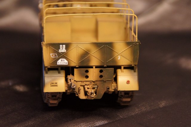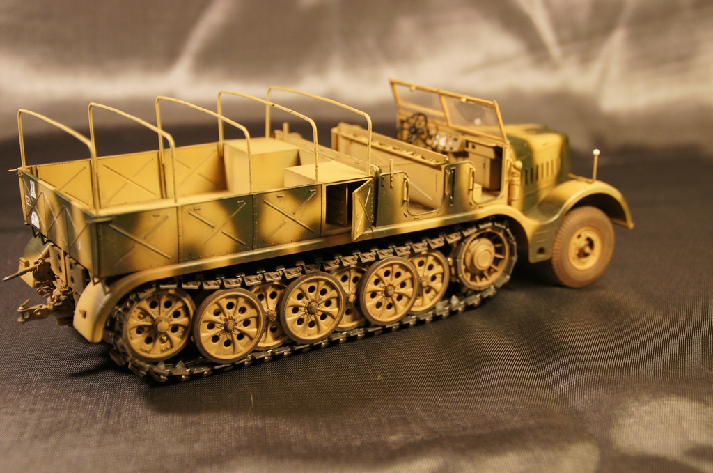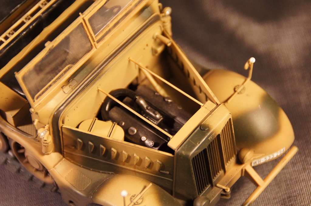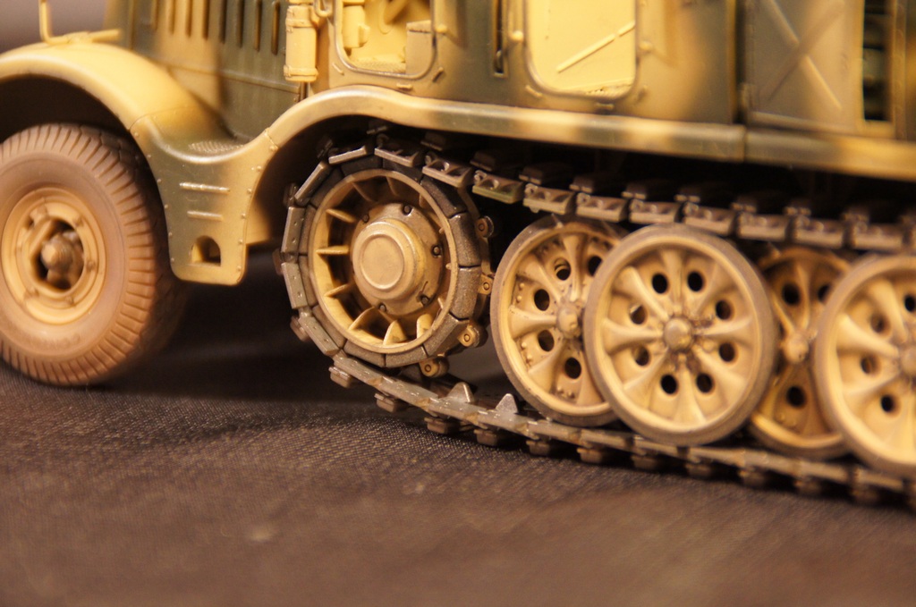 Модель собиралась полностью из "коробки". Качество деталей отличное, сборка особых трудностей не вызвала. Траки выполнены наборными. Дверцы ящиков ЗиП выполнены открывающимися. Модель окрашивалась аэрографом. Грунтовка и краска использовалась "АКАН", пыль - FX-52, художественная пастель, потертости - чернографитный карандаш, сколы - линеры 0.1, 0.3мм черного цвета.