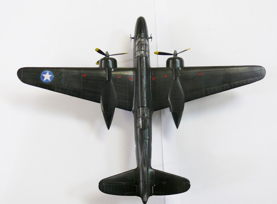 В сети нашел фото этого борта. Замечательно! Значит на крыле красные бордюры и на фюзеле полоса "денжер пропеллер". Будет чем разнообразить черноту самолета. :-)