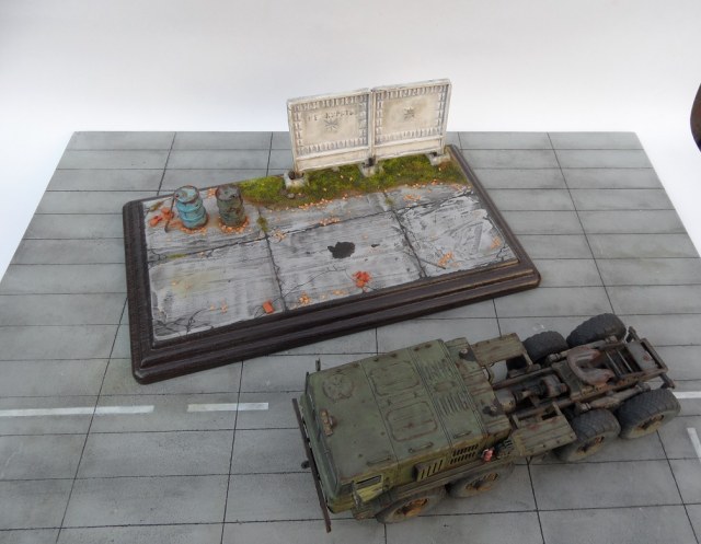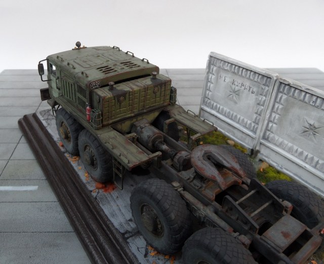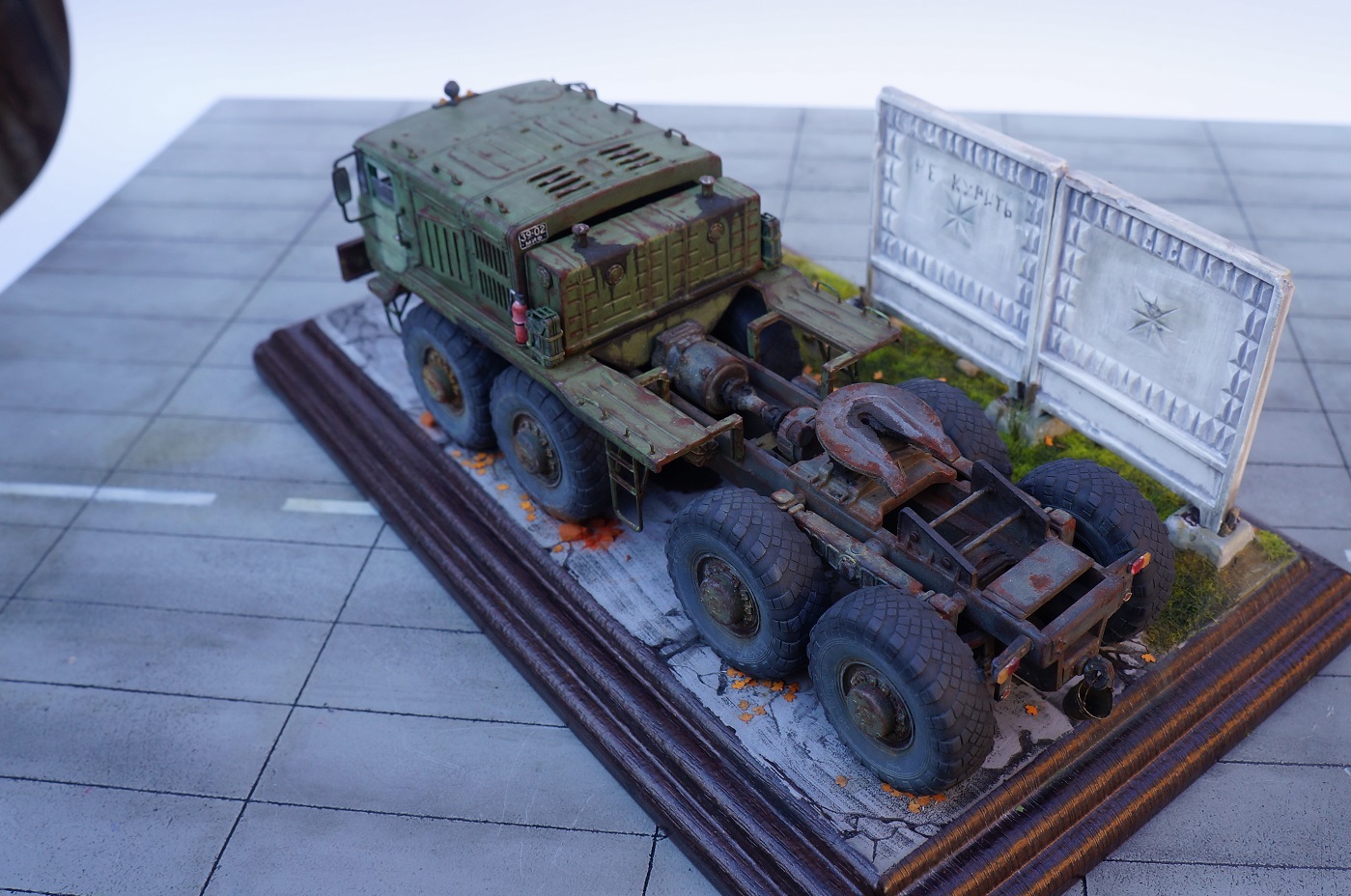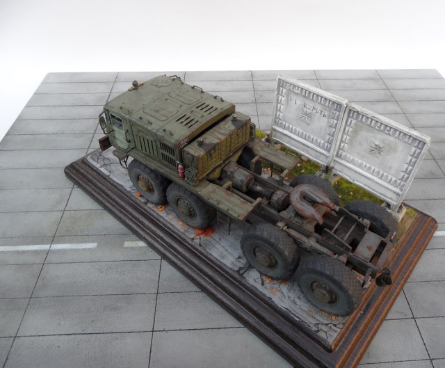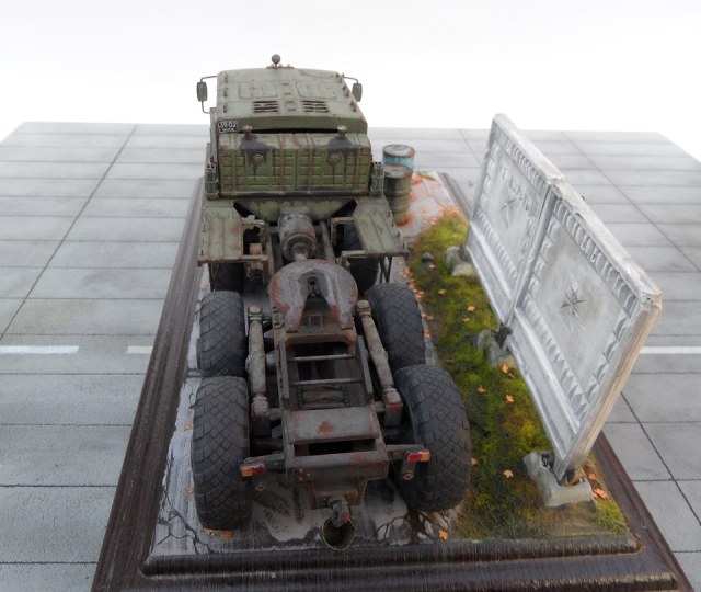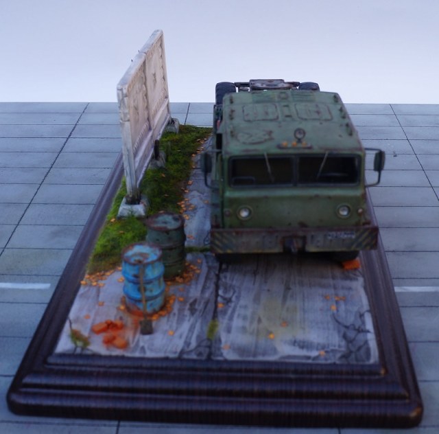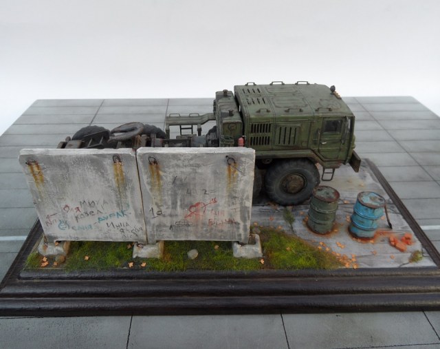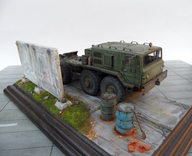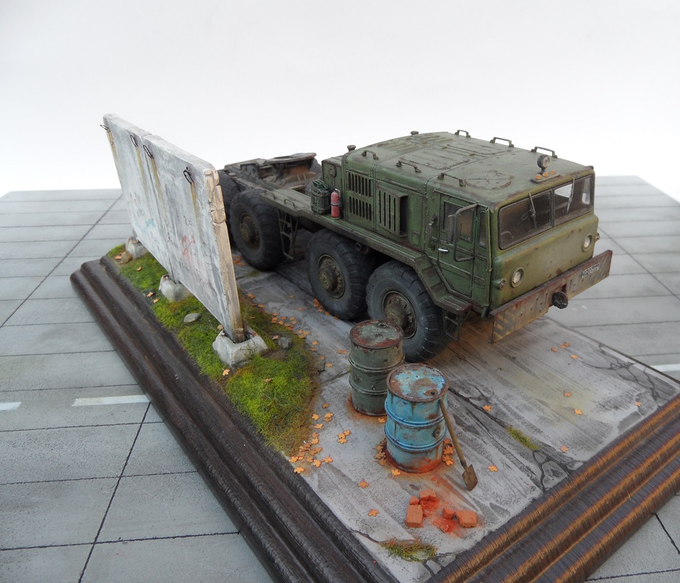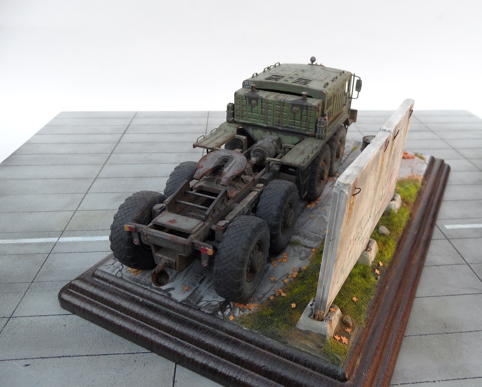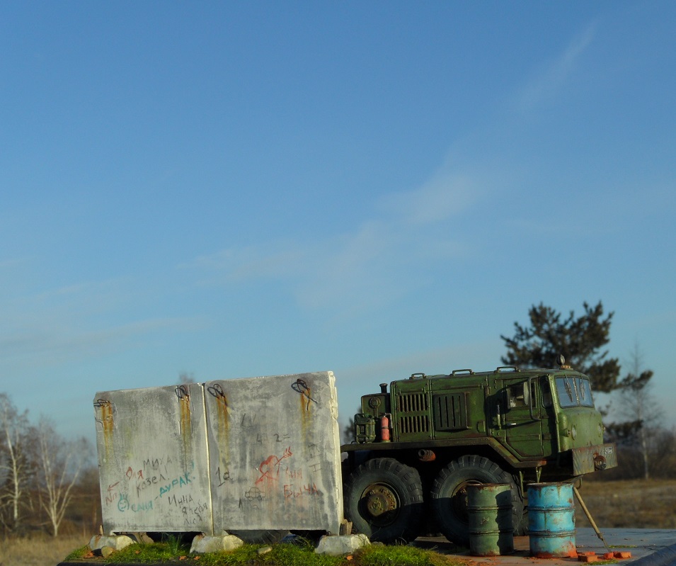 Скажу так. Бегло просматривая фото, подумал: "Очевидно, "Трумпетер", но колеса только не из набора". )))) Реально, круто! Даже мой, наметанный глаз художника - на многих фото, не мог отличить подделку от оригинала. А если немножко по-другому покрасить панели фрагмента забора, так, вообще был бы "оригинал"! А конкретно, цвет чуть коричневатый должен быть, а не серый. И хотя бы немного потеков на панелях.
