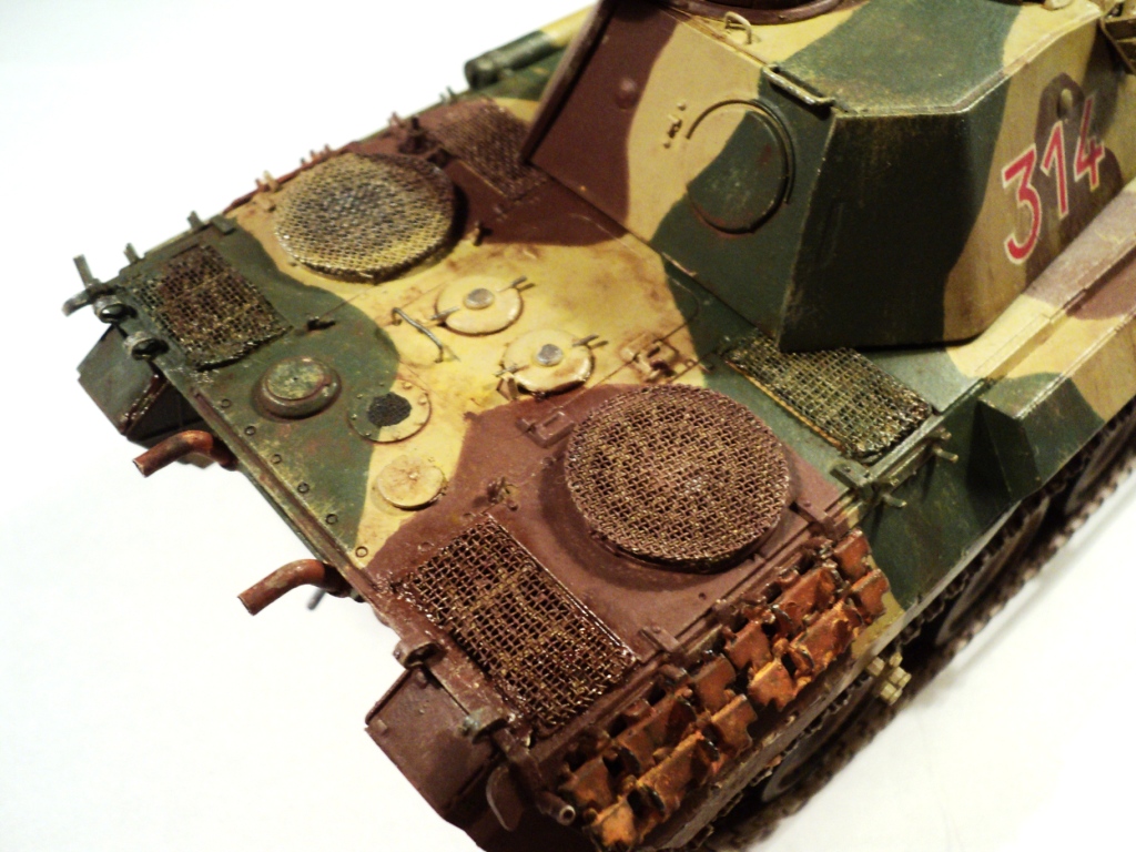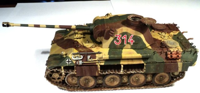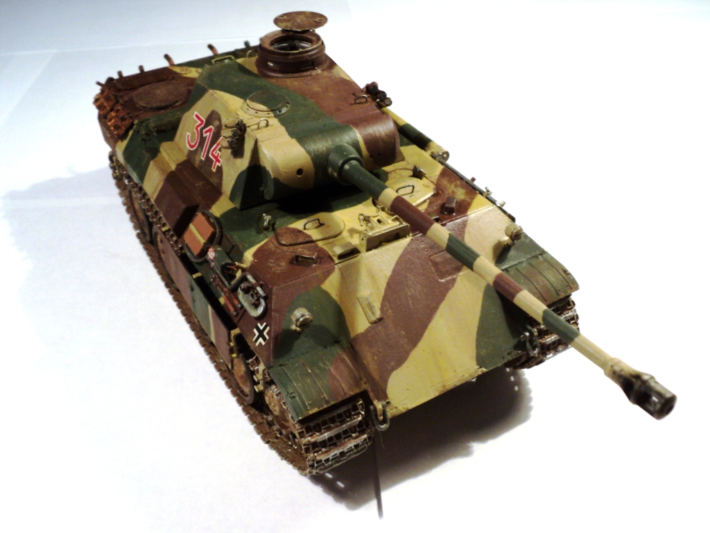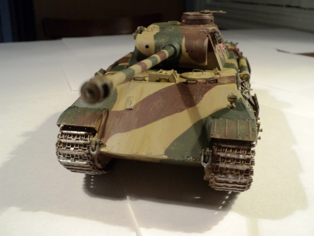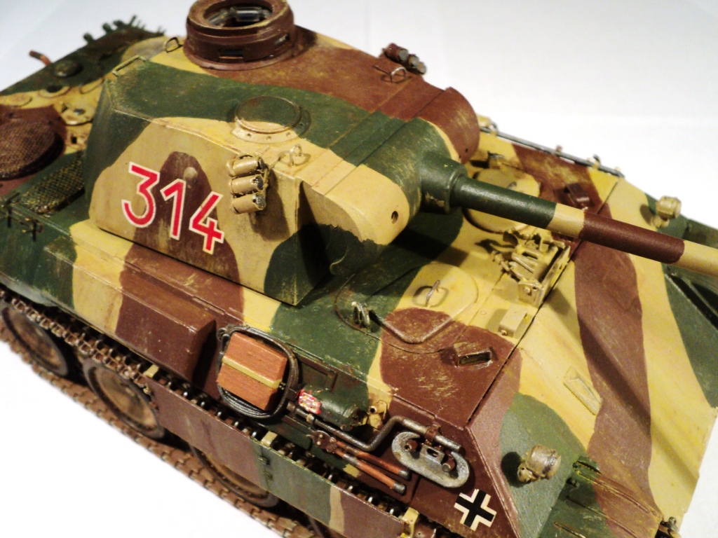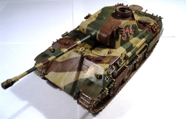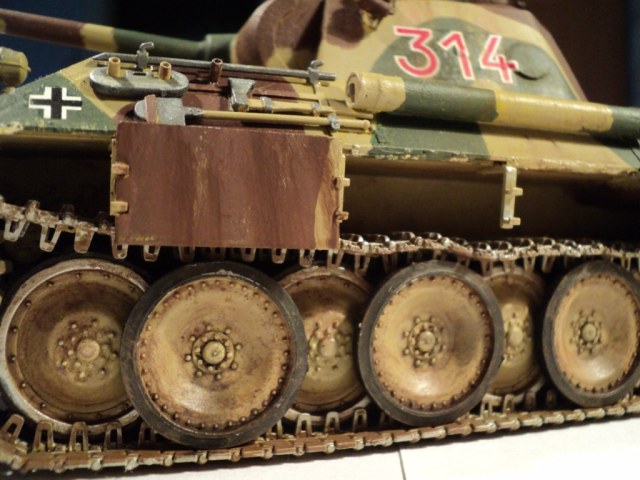 Я решил сделать "Пантеру" 13-й ТД Вермахта периода осени 1943 года. Набор, на мой взгляд, был достаточно полным. Доработку производил по минимуму (проводка к мортиркам, из медной проволоки и самодельные сетки МТО (из запчастей к сантехнике). Базовая окраска - кистью, акрилом от "Звезды", дальнейший фильтр и тонировка - художественным маслом.