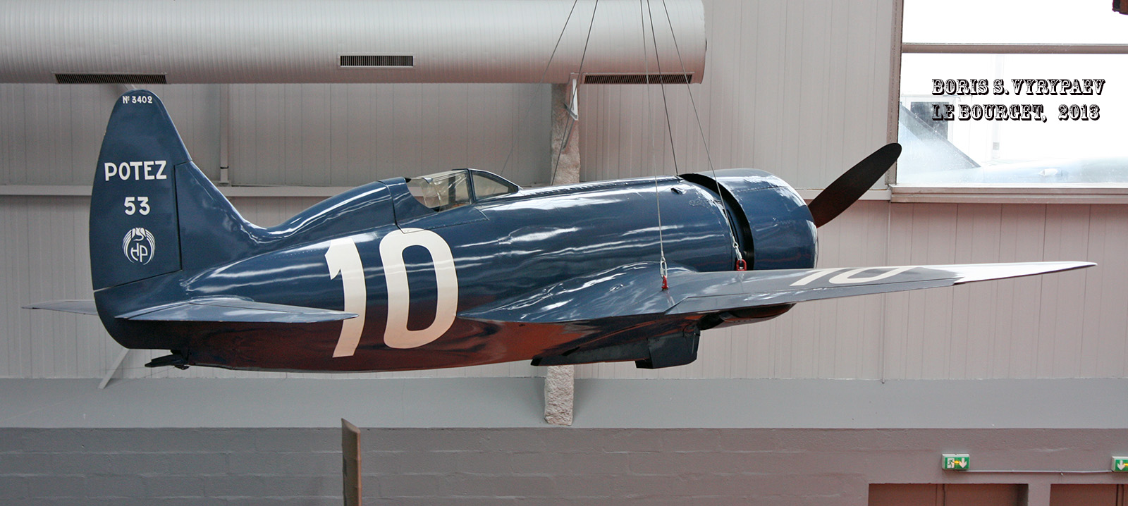 Очередной экспонат из французского музея Le Bourget самолёт Potez 53 - рекордный самолет, разработанный французской фирмой Societe des Avions Henri Potez. Этот самолет был построен в двух экземплярах специально для участия в гонках Coupe Deutsch 1933 года. Темпы строительств были тоже поистине рекордными - начало строительства в январе и окончание уже в апреле месяце. Фюзеляж самолета представлял собой цельный цилиндр, с единственным отверстием - кабиной пилота и использовался как топливный бак. Размеры самолета рассчитывались исходя из антропометрических данных пилотов - Жоржа Детре и Гюстава Лемоина. В связи с большой скоростью строительства статических испытаний самолета не проводилось, сразу преступили к летным испытаниям. Первый полет Potez 53 состоялся 26 апреля 1933 года. Почти сразу же были выявлены недостатки самолета, главным из которых была плохая центровка. Но это не помешало Жоржу Детре 29 сентября 1933 года пролететь 2000 километров за 6 часов 11 минут и 45 секунд со средней скоростью 322,8 км/ч.