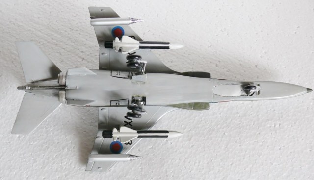 Еще один ностальгический ретро самолетик. «Ягуар» достался мне в собранном виде. Году в 89м выменял у одноклассника на пластинку «Модерн Токинга». К творчеству двух германских педиков я всегда был равнодушен, а «Ягуар» заиметь ужасно хотелось. Так как мой одноклассник абсолютный жопорукий рукожоп (что до сих пор иногда подтверждает своими странными деяниями, недавно умудрился нае*нуться со стремянки и сломать обе ноги), то слепил модель богомерзко. Все что можно было и нельзя переляпал каким то не опознанным клеем типа БФ. Я как смог по тем временам модель очистил. Двух ракет не хватало, так что я особо не заморачиваясь пришпандорил блоки НУРСов от «Хантера». Красил по чернобелой фотографии НОВОвской коробки и декали купленной на «Точке» у барыги. Был у барыг и такой бизнес – торговля фотками (иногда отвратительного качества) фирменных коробок.