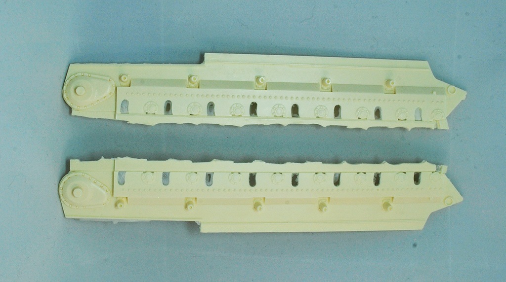 Наборные траки лучше доработать и сделать ленту рабочей. Правда в любом варианте придётся повоевать с облоем на каждом траке.