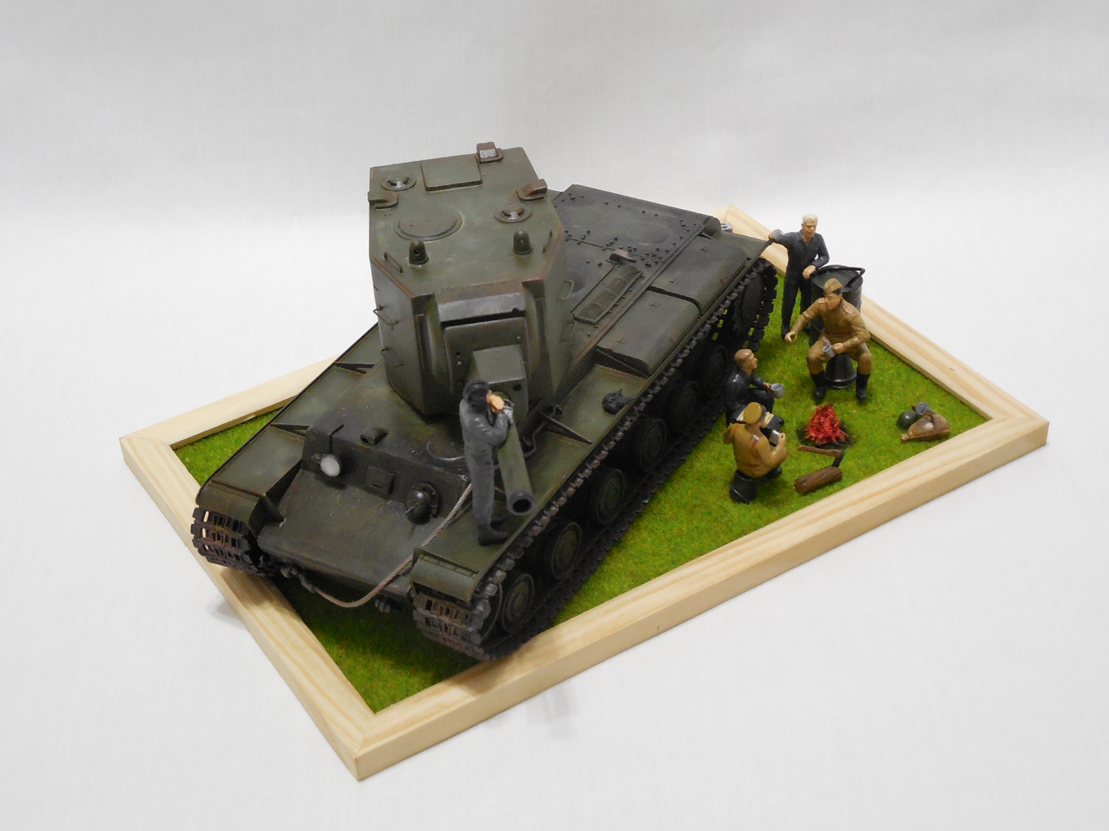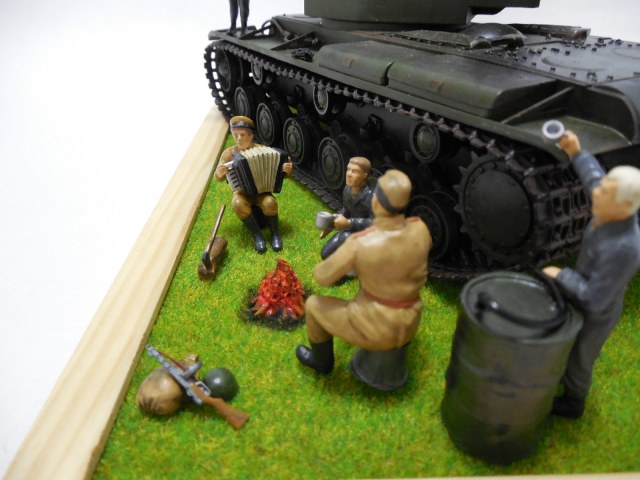 Фигурки, костёр и прочая мелочёвка почему то выглядят как будто из воска (лаком наверно злоупотребили), по танку не совсем ясно, фотки темноваты, толком не видно, сложно оценить