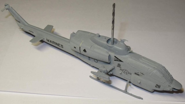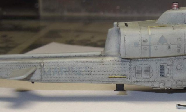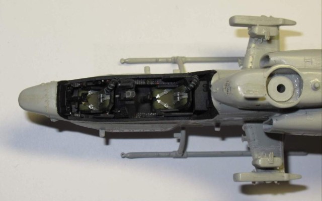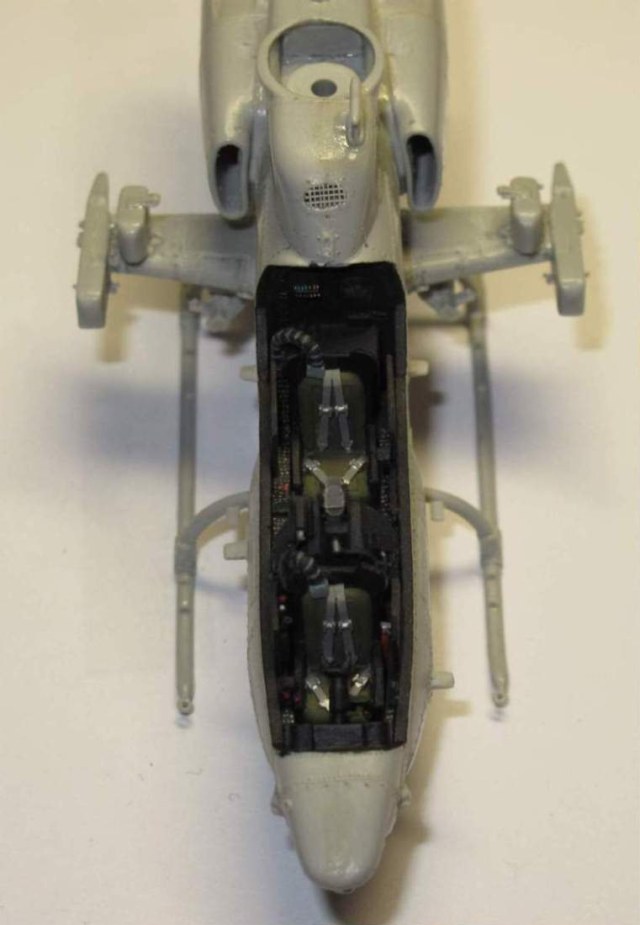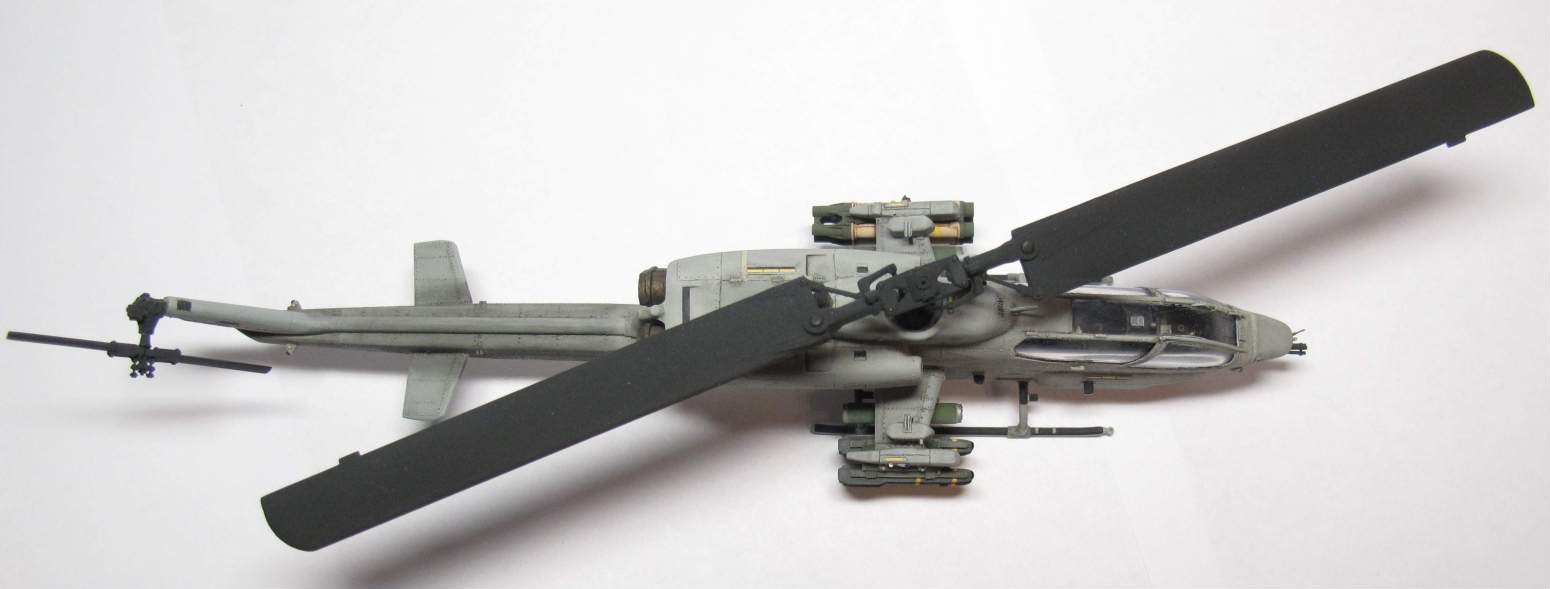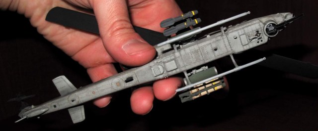 Вооружение из набора взял только блок неуправляемых ракет LAU-61A (тот, что под левым крылом). Блок LAU-68 (тот, что под правым крылом), сделал сам, взяв накладки задней и передней части из набора и обрезав их. У ракет AGM-114 Hellfire пришлось переделывать носовую часть и подвесные пилоны. Подвесной блок на 4 ракеты TOW полностью с нуля сделал сам.