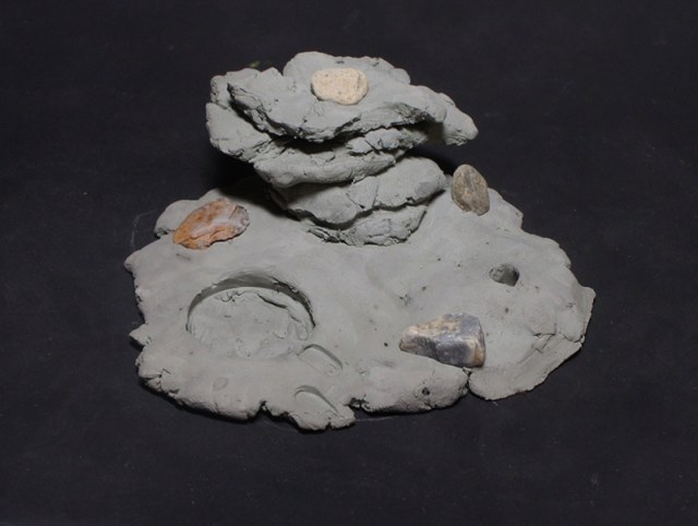 База/основание - глина,пигменты,лен,камушки,мох,корешки.