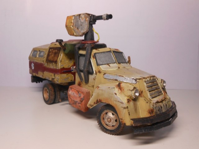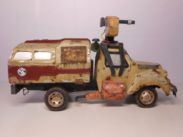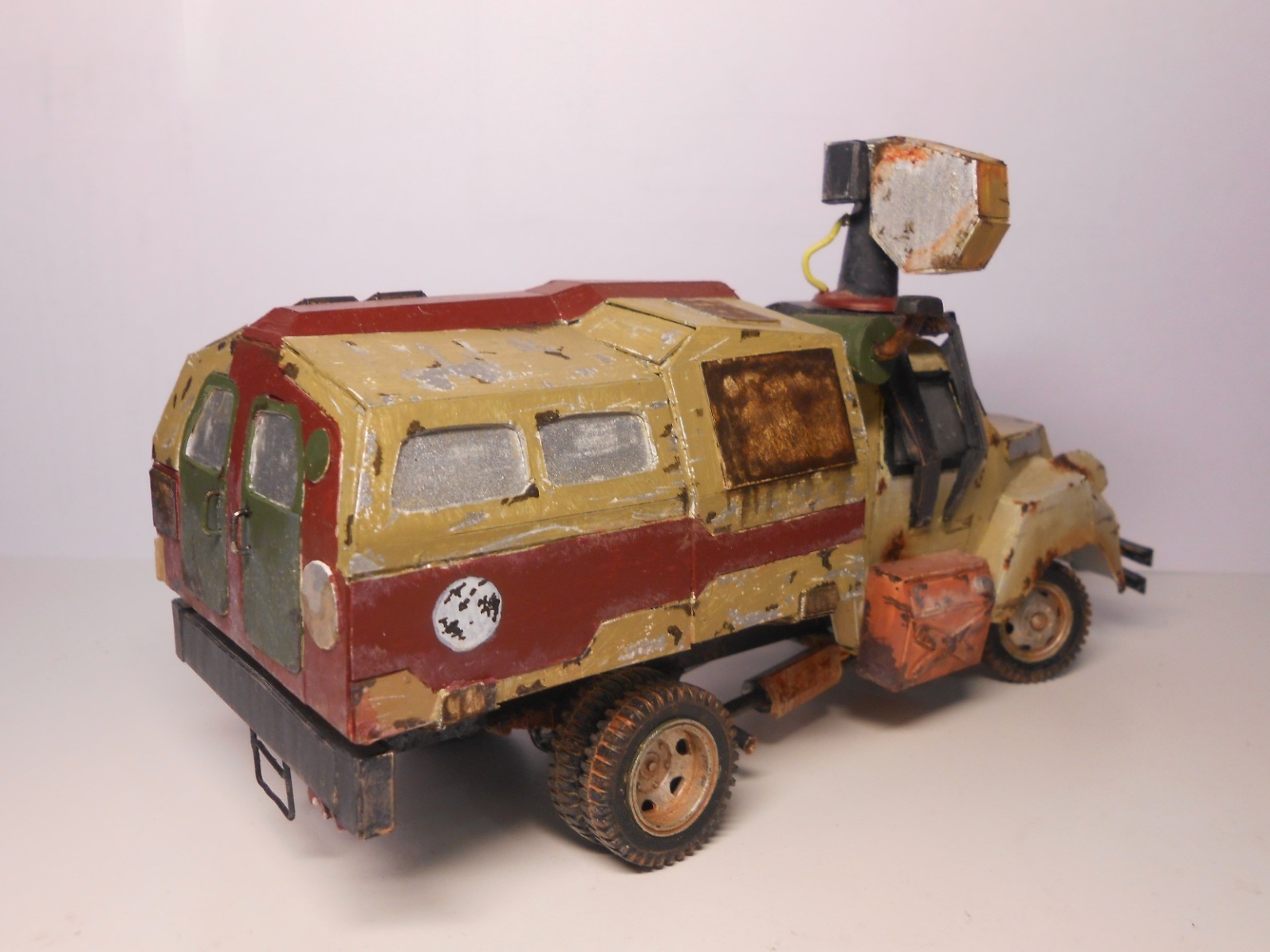 Работа шла долго, в основном зимними вечерами. Пластик попался очень хрупкий и плохо берущийся даже моментом, поэтому если приглядеться можно заметить некую небрежность в соединениях деталей, так же не обошлось и без шпаклёвки. Колёса подобрал от ЗИСа-151 от Звезды. Красил красками от Тамии, старил и пачкал маслом.