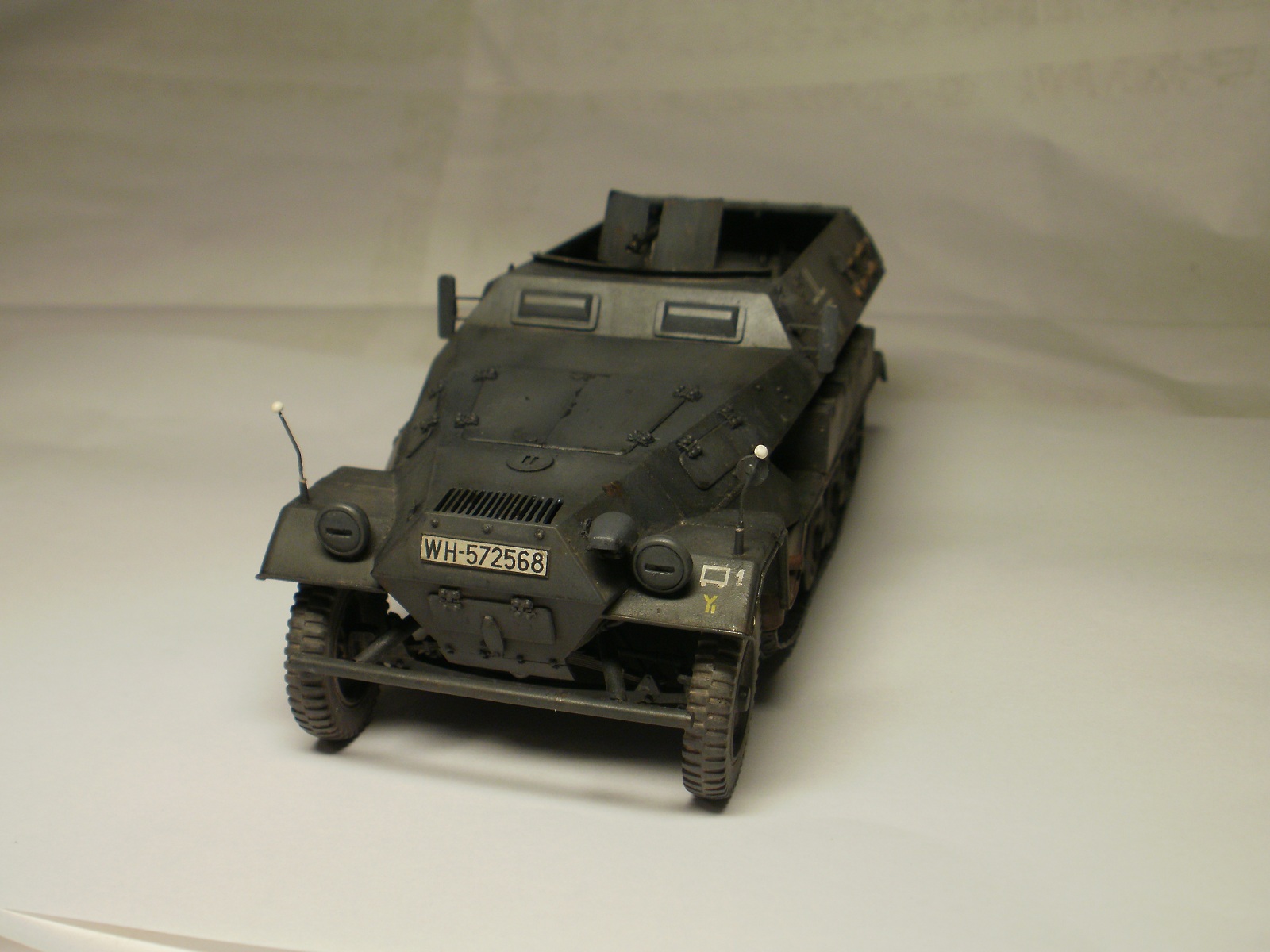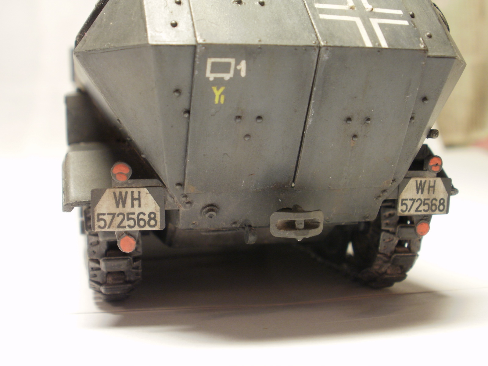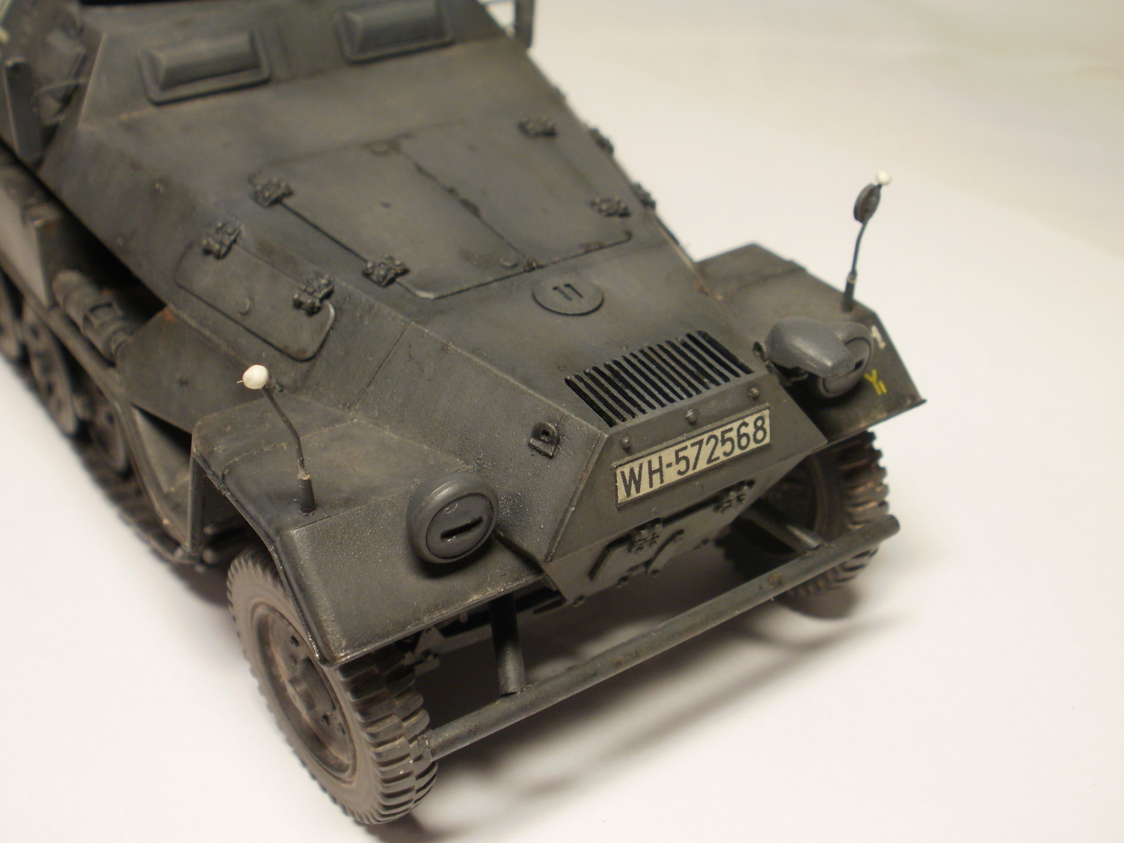 Что не понравилось: прежде всего, при Вашем подходе, стоило ИМХО заменить пулемёт на точёный, да ленту добавить. С фарами и "нотеком" намудрили: на себя они не похожи для данной версии машины ("нотек" один конечно, но "самолепный" не смотрится).