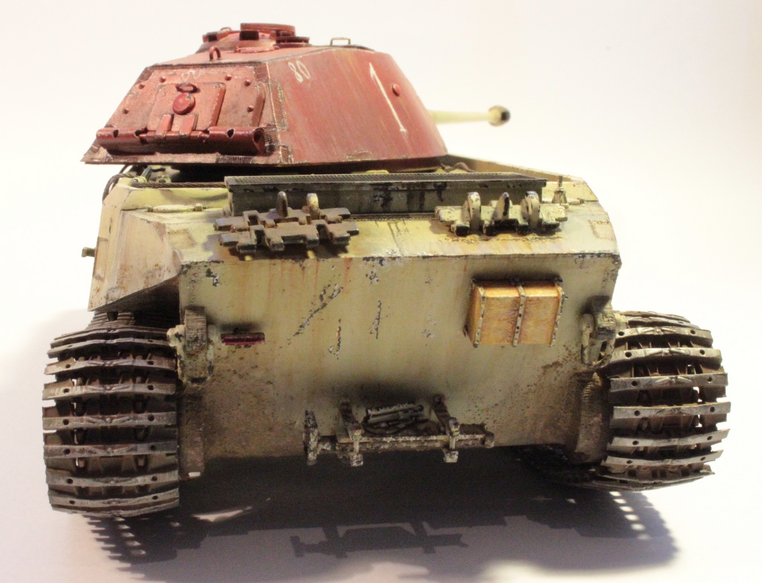 Классная модель! На мой взгляд без шанцевого инструмента живее выглядел бы и может я не знаю но башня ведь покрыта красным грунтом а под ним еще и песочные сколы, они лишние я думаю, нелогично. С уважением.
