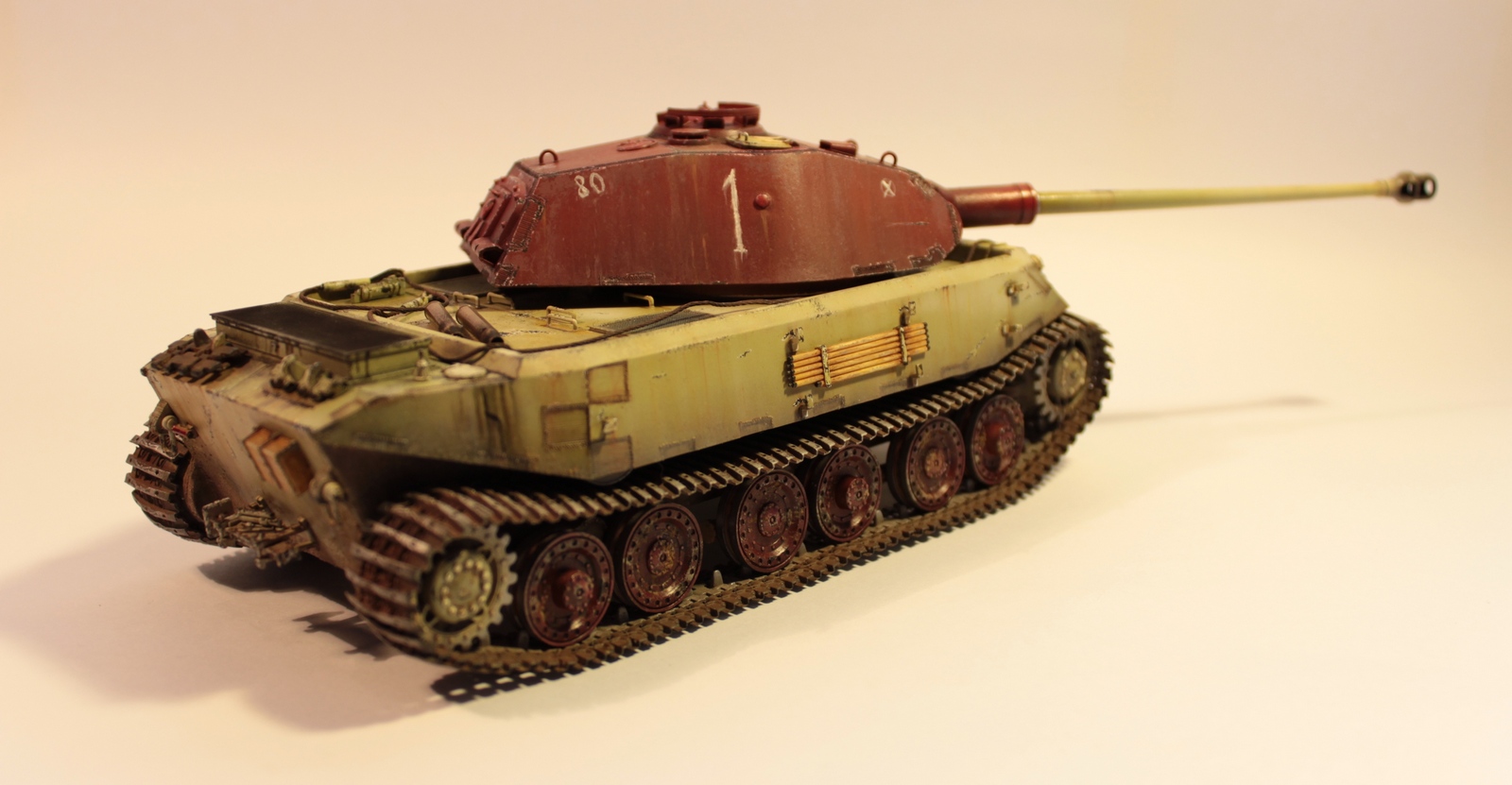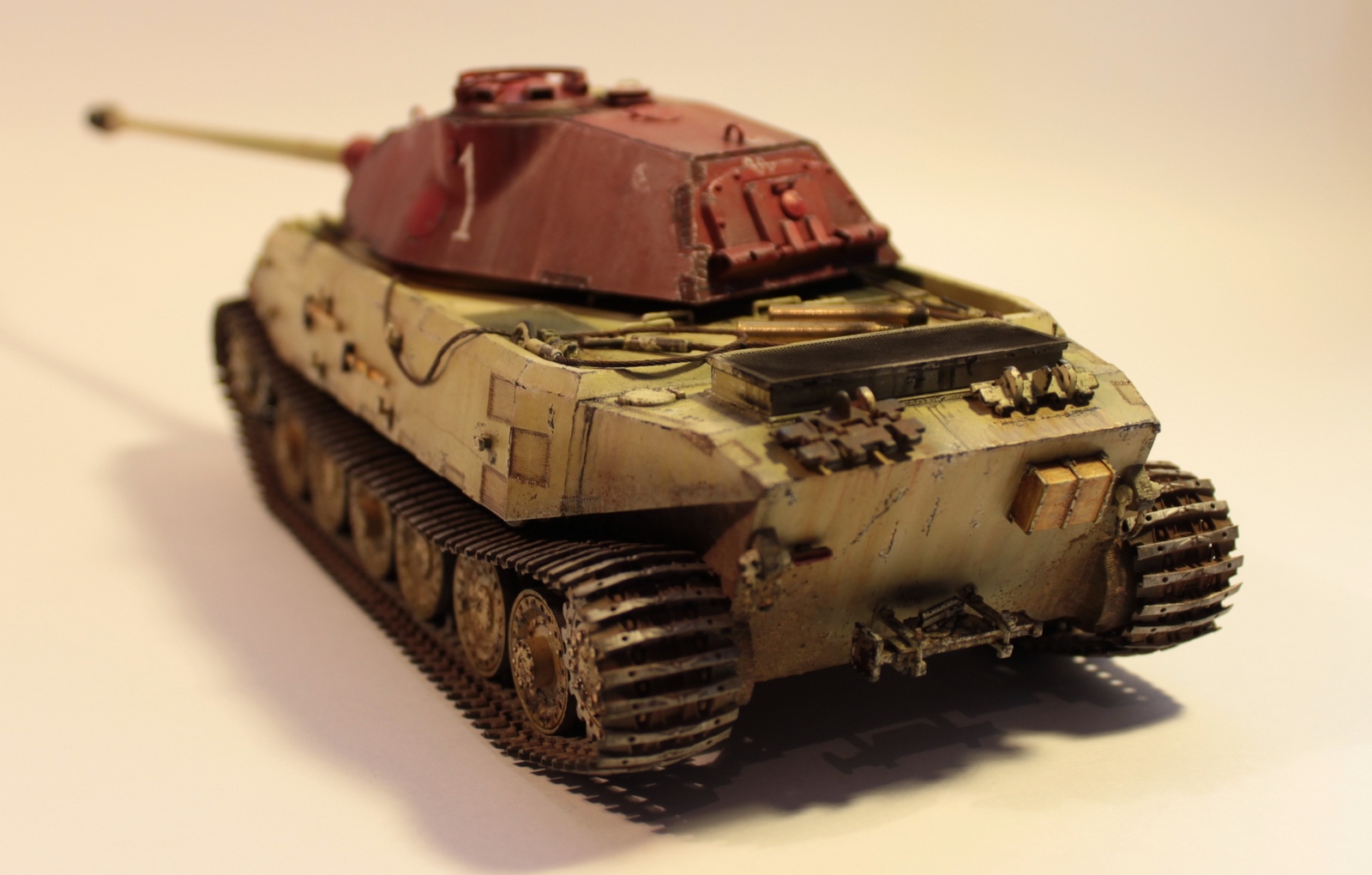 Представляю Вашему вниманию из коробочную модель прототипа немецкого гения танкостроения. Давно хотел сделать что-то необычное. Вот так и получился этот прототип. Единичка на башне означает, что это первая из пятидесяти башен которые Порше построил для своего прототипа. Которые в последствии, как вы знаете, стояли на первых королевских тиграх Хеншеля принятых на вооружение Германией.