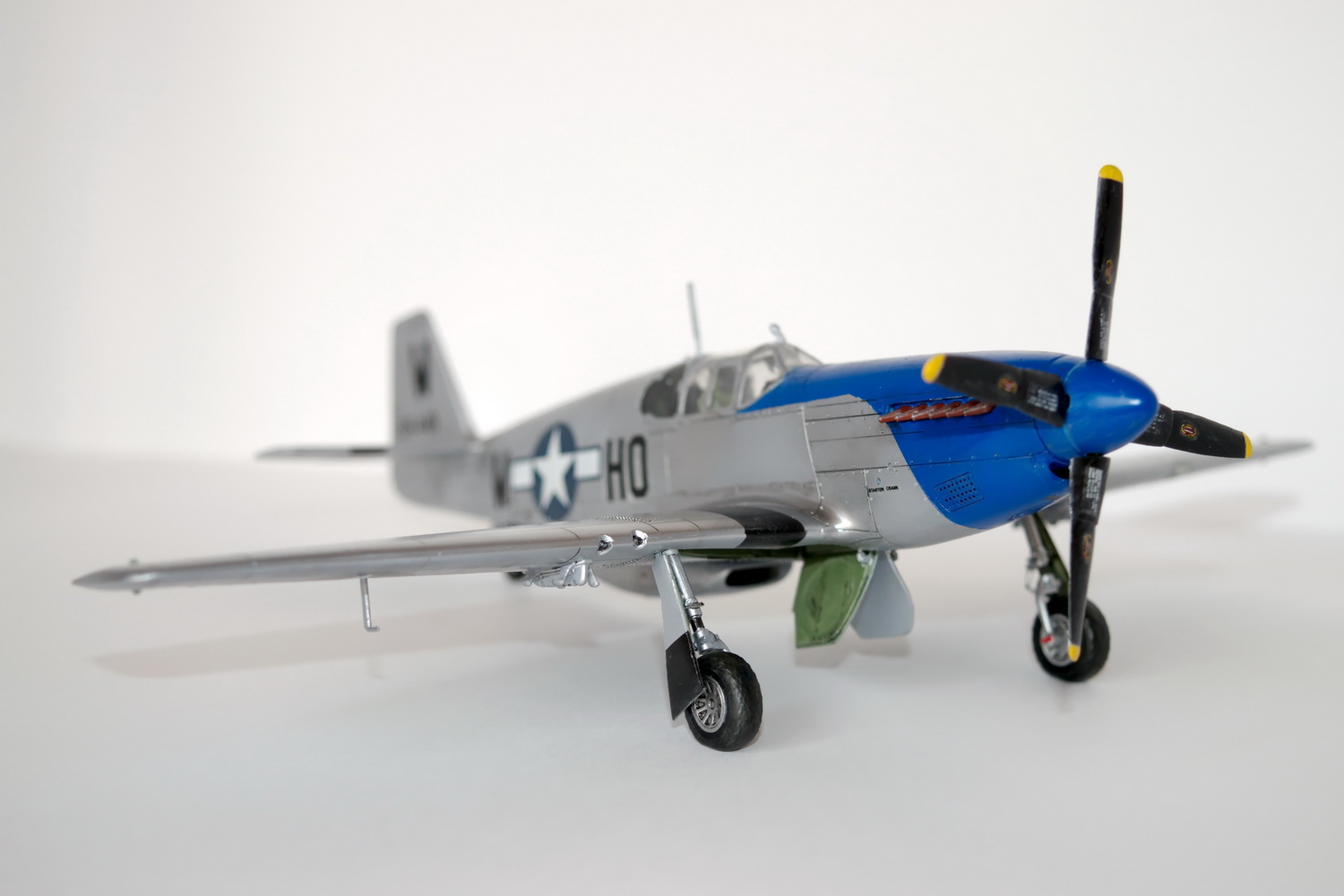 Красивый американский американец! Синий очень сочетается с серебрянно-серым. Расшивка хорошо показана, а левая стойка шасси предательски съехала в сторону.