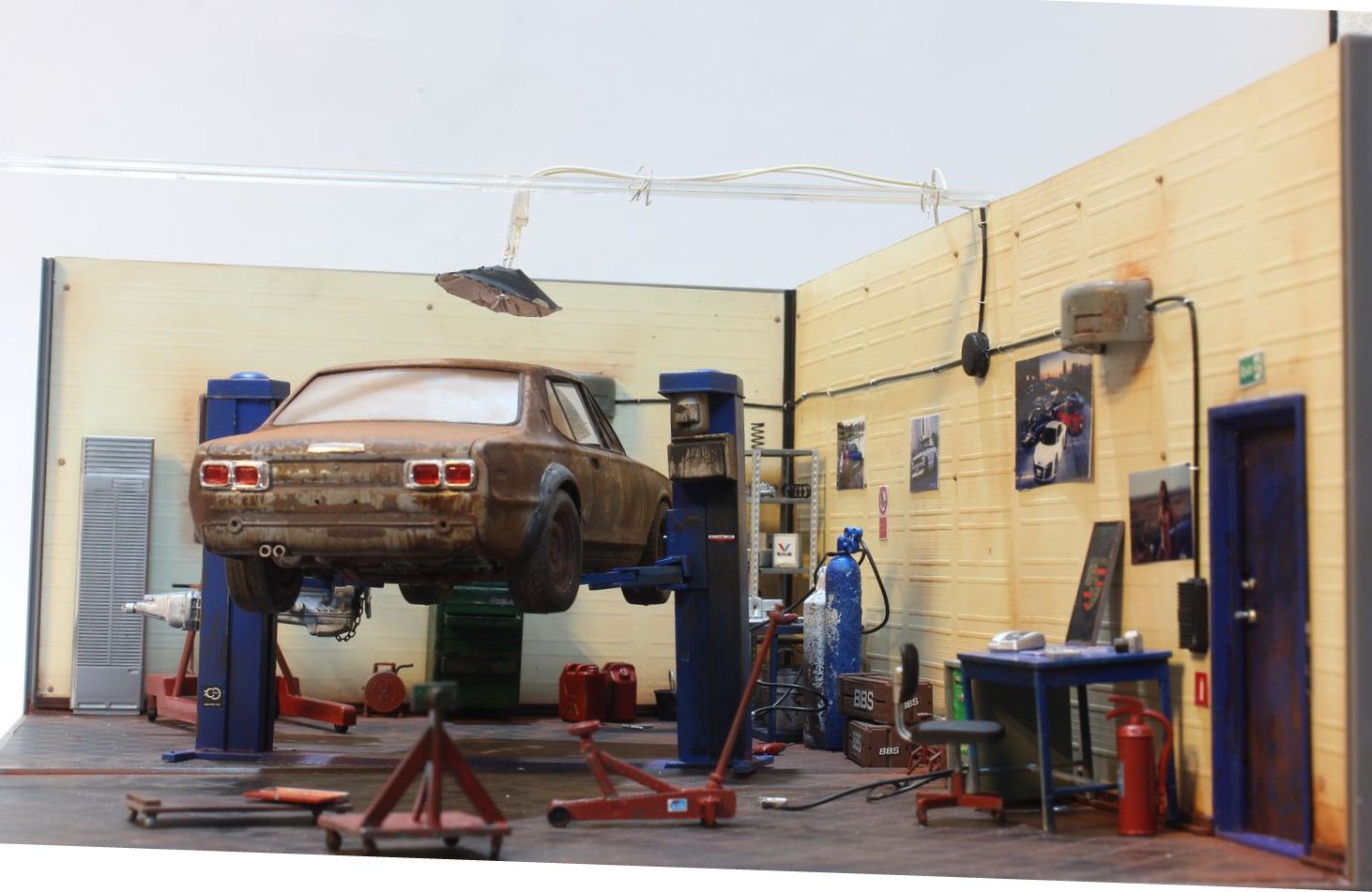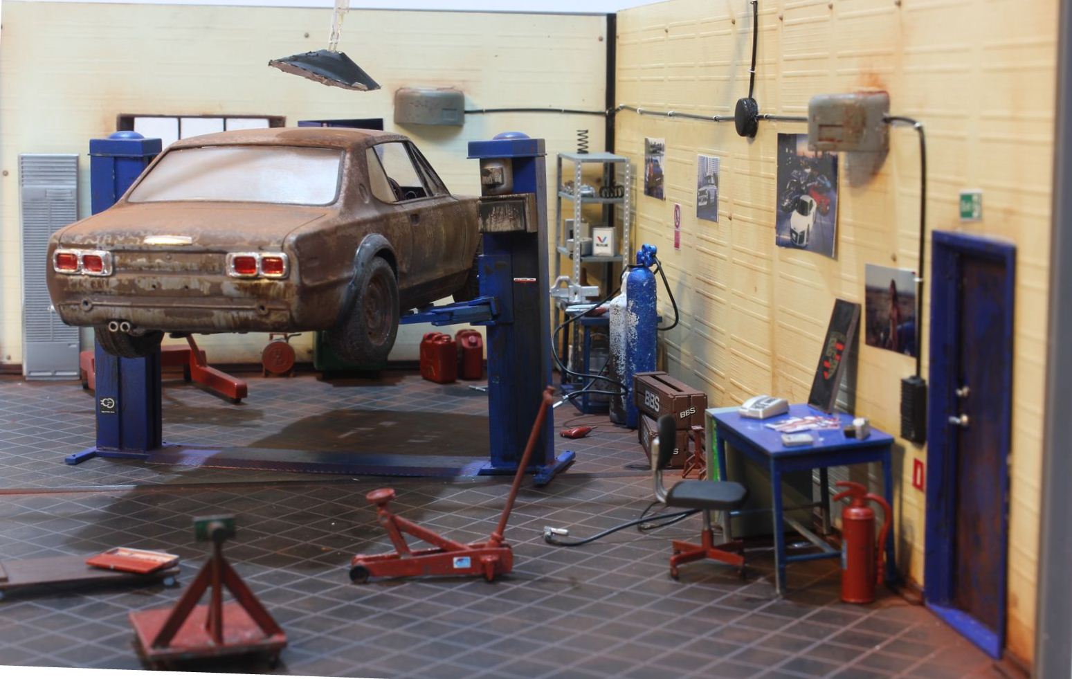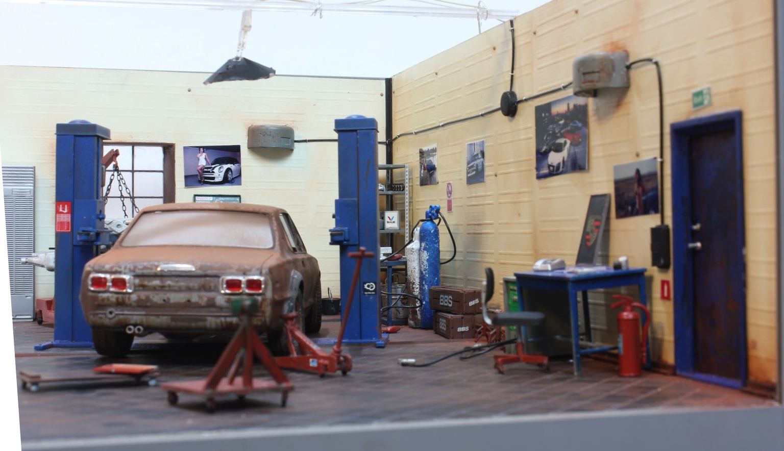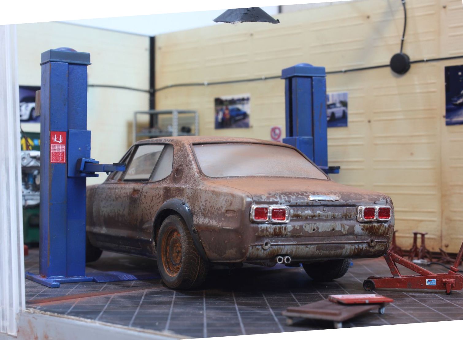 В композицию решил добавить небольшой сюжет: Наши дни. Не очень крупный город. Где то в одном из районов находится не большой старый гараж. Работают в нем обычные не дипломированные механики, которых интересуют старые тачки. И вот где то был найдет очень редкий, но очень "убитый" ниссан. Поскольку машина не на ходу, был найден контрактный мотор.