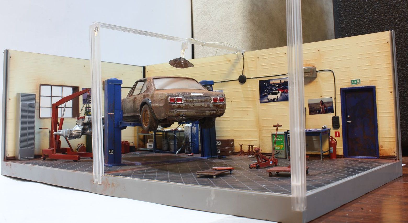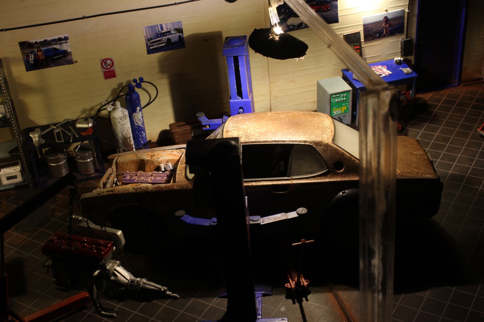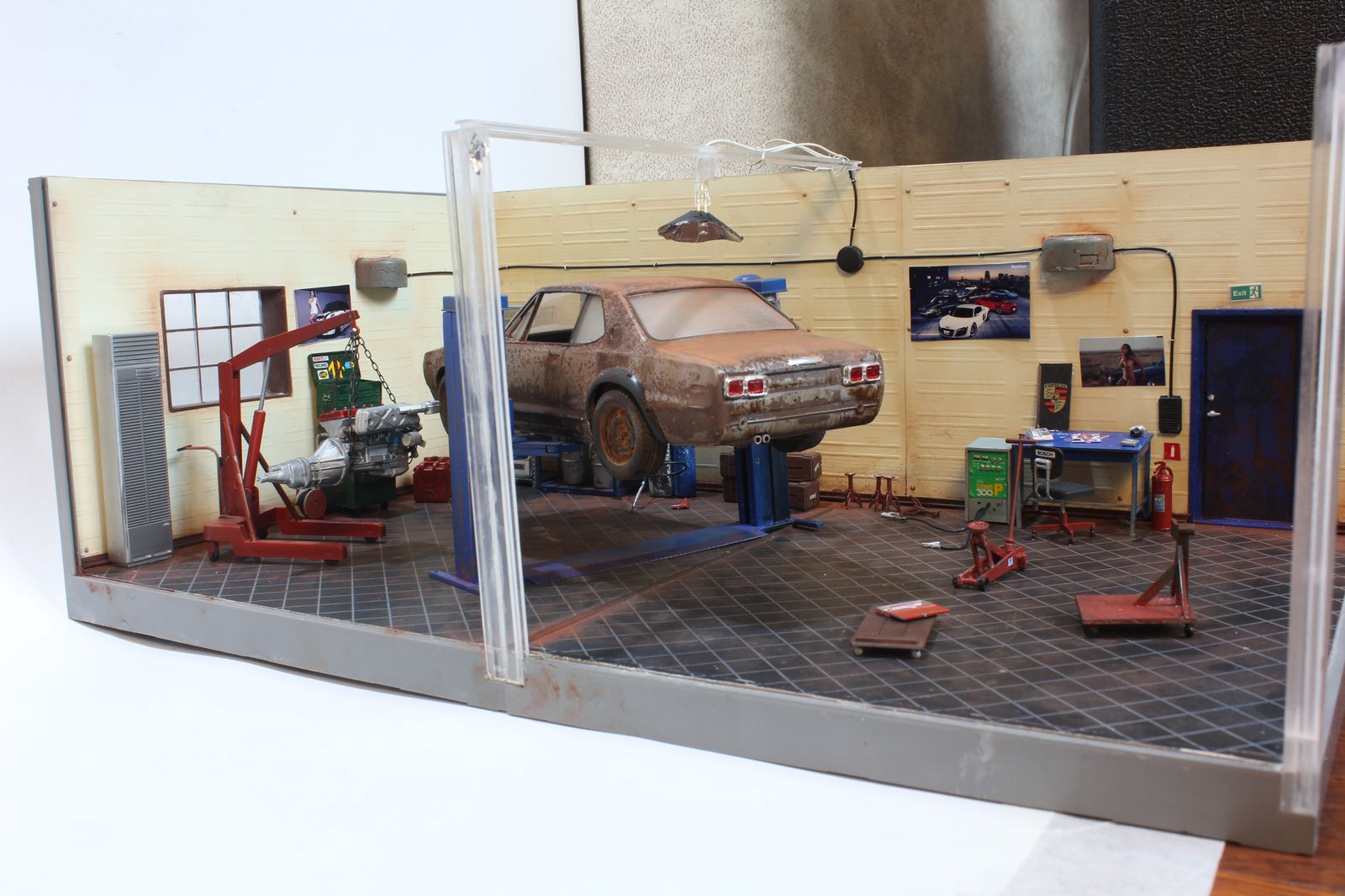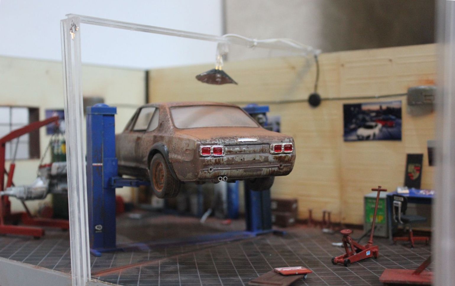 В композицию решил добавить небольшой сюжет: Наши дни. Не очень крупный город. Где то в одном из районов находится не большой старый гараж. Работают в нем обычные не дипломированные механики, которых интересуют старые тачки. И вот где то был найдет очень редкий, но очень "убитый" ниссан. Поскольку машина не на ходу, был найден контрактный мотор.