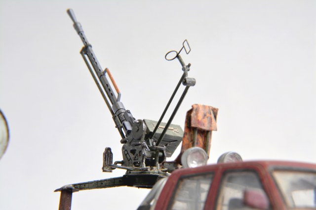 всех приветствую! это моя первая модель данного производителя, ожидал большего, так как менг все хвалят, но в общем приятные впечатления. В общем собирал изкоробку, но решил перепилить стрелка в водителя и сделать своеобразный лафет под зу, так же набил кузов вещами от менга.