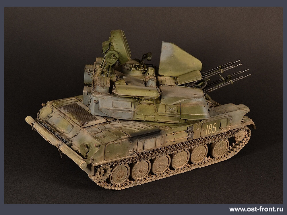 Если долгие годы в распоряжении моделистов был только один старый набор от фирмы DRAGON, то в начале 2016 года сразу две китайских компании выпустили по "Шилке", HONG Model и MENG Models, причем набор от последней дает на выбор сразу четыре модификации, включая позднюю версию - ЗСУ-23-4МЗ "Бирюса", оборудованную запросчиком "свой-чужой". Мы воспроизвели именно эту версию. Привязка и соответствующий вариант камуфляжа - согласно инструкции - №185 зенитного дивизиона 105-го мотострелкового полка Уральского военного округа, 1998 год. Впрочем, фотографии именно этой машины найти не удалось, остается надеяться на компетентность авторов набора.