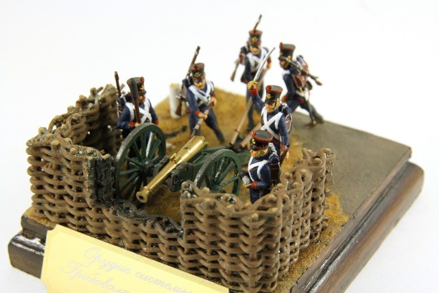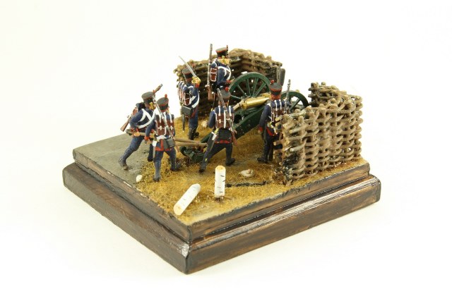 В левой части немного распушил плетенку для имитации последствий попадания ядра. Всего ядер на диораме, кстати, три))