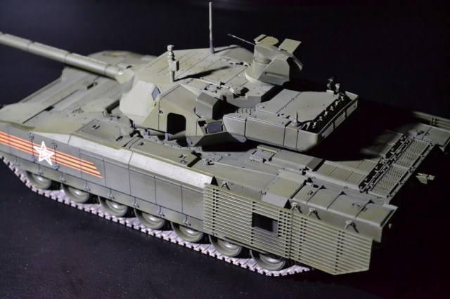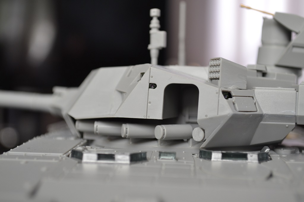 Как и обещал в ответах на комменты к последней моей модели, сделал танк без сколов. Перед вами уже широко известный Т-14 от Takom. Поскольку про набор всё уже рассказано, скажу только что из "допилов" тросы из остатков от Eureka, крепления к ним самопальные, так же самопальные боковые камеры и модернизированные фронтальные, задние и кормовая. Плюс немного разнообразил прицел пулемета, его кожух и ствол воткнул от MMского Утеса. Остальное "изкоробки". Чуть не забыл про обувь от МастерКлаба - взял на пробу траки для Т-90 (по сравнению с Фриулом очень много брака. Большой минус приемке по качеству). Танк собирал с удовольствием и относительно быстро. По краске: база от Ганзы, лаки Тамия, фильтр и смывка самопальные (эксперементировал)))). Ну, на этой оптимистической ноте... кидайте табуретки))).