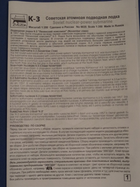 Решил сделать обзор на подводную лодку “Ленинский Комсомол” К-3 от производителя "Звезда"в масштабе 1/350.