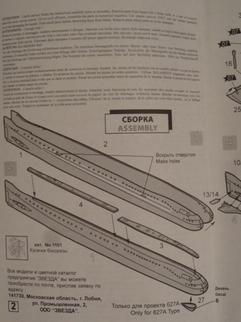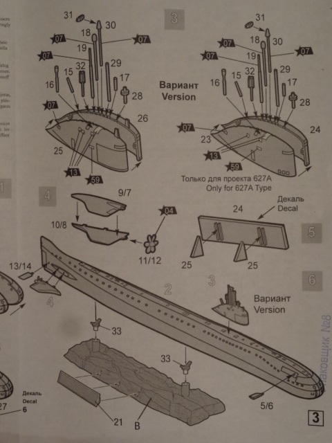 Позволю себе дополнить описание тем что этот набор позволяет собрать как лодку К3 Лен.комсомол пр.627, так и одну из лодок модифицированного проекта 627А.