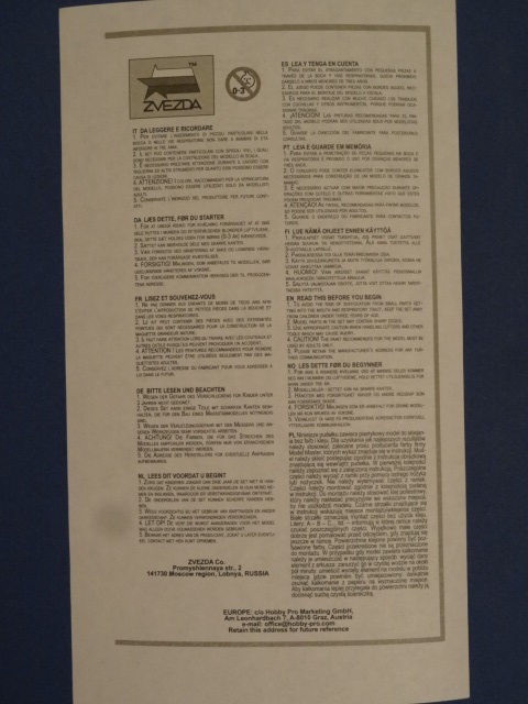 Также в наборе присутствует небольшой листок с декалью.