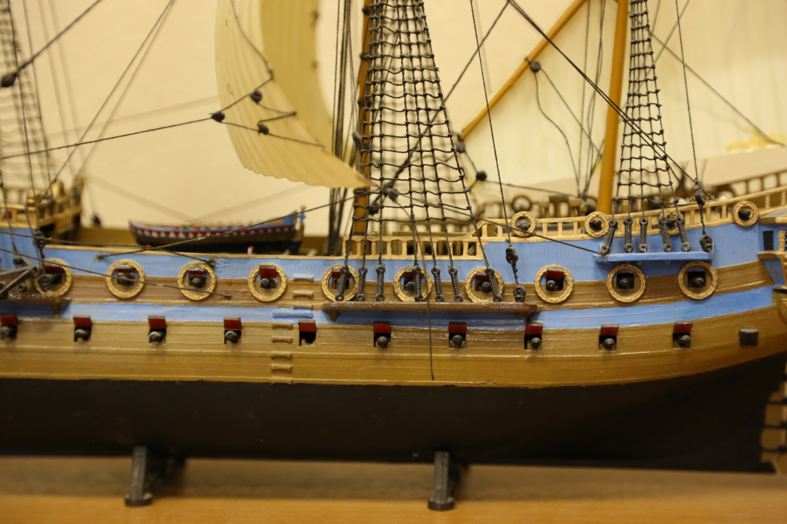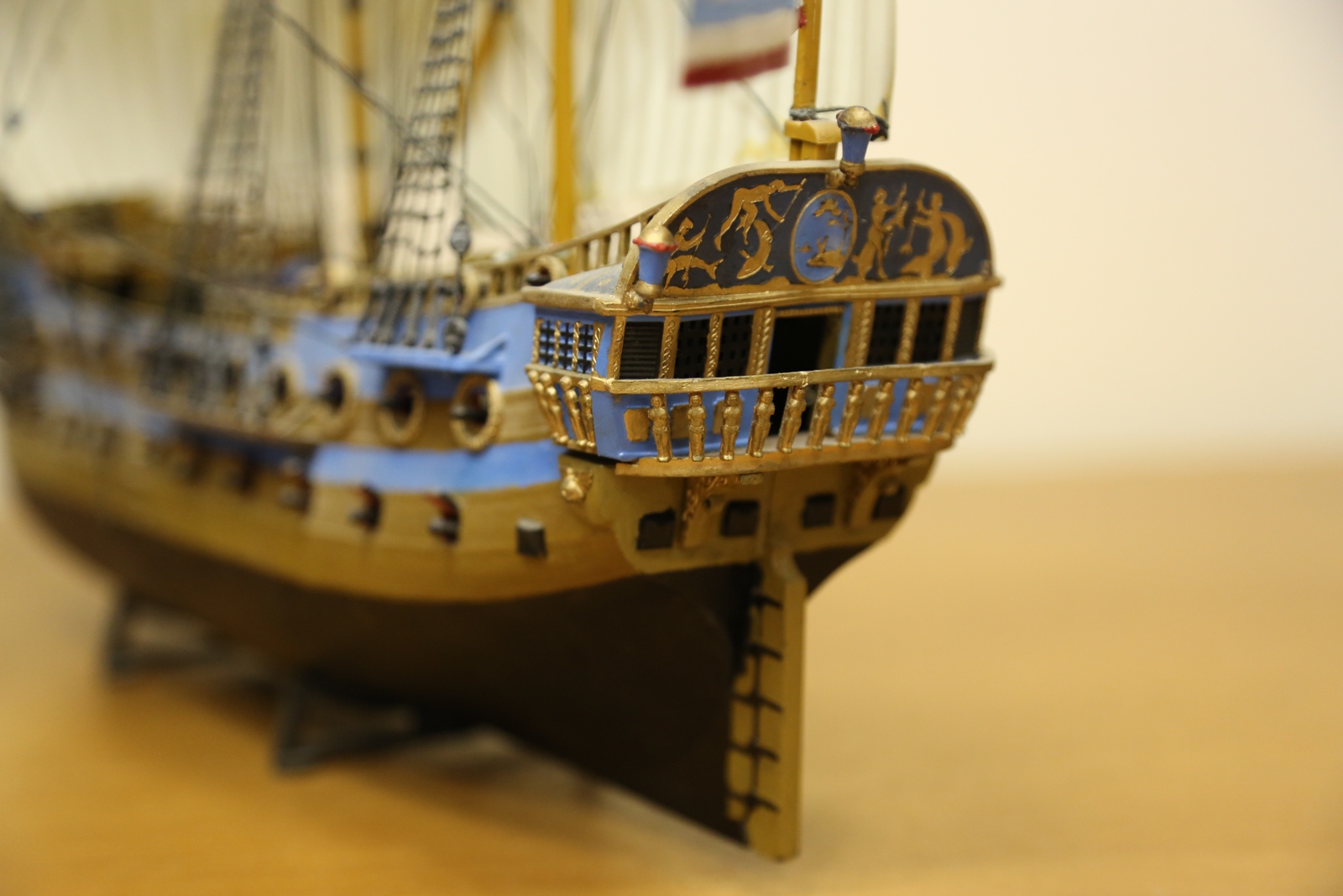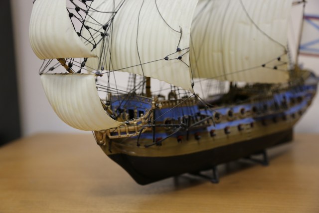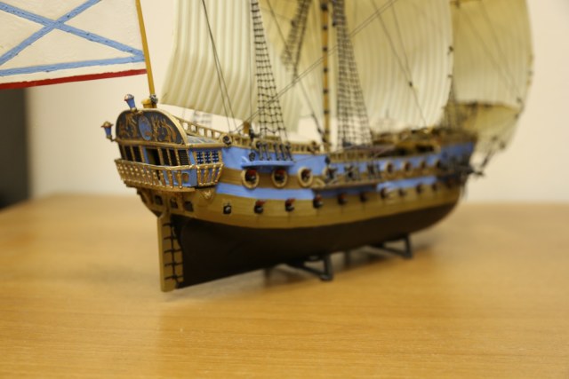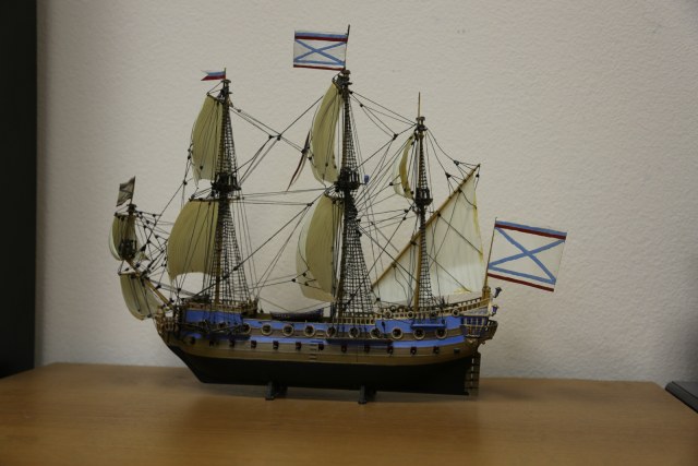 Ну что тут говорить. Все ее собирали. Вот и я собрал. Правда с тех пор корабль пережил четыре переезда, что не лучшим образом сказалось на нем. Но в целом еще ничего. Такелаж делал самостоятельно, по литературе.