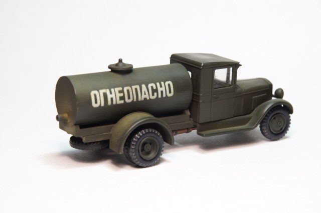 ЗиС-5 БЗ-39 от PST. Изкоробка, добавлено остекление кабины, фары из прозрачной эпоксидной смолы, огнетушитель, зеркало. Окрас аэрограф. Краска: тамия, звезда супер. Масляные пятна смывка, запыление постелью.