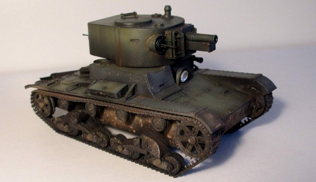 Всех приветствую! Представляю на обсуждение коллег модель эксперементального танка так и не пошедшего в серию Т-26-4 с орудием КТ-28 .Набор от «Макет+Комбриг» ,а если быть точнее-ходовая от «ЗВЕЗДЫ» ,а смоляная башня от «КОМБРИГ» . Модель строилась в рамках конкурса «Собери свой подарок от АДМ» .Более подробную стройку можно посмотреть ЗДЕСЬ http://karopka.ru/forum/forum383/topic22599/ Модель досталась мне в частично собранном виде(часть ванны была собрана, на верхней крышке намертво было установлено седло, и родной воздухоотвод часть деталей отделена от литника) .Сама сборка особого труда не доставила. , так как опыт по сборке «Звездовского» Т-26 имелся, но покорпеть все-таки пришлось . Модель собиралась изкаробки и без особого углубления в мат.часть с незначительными доработками .