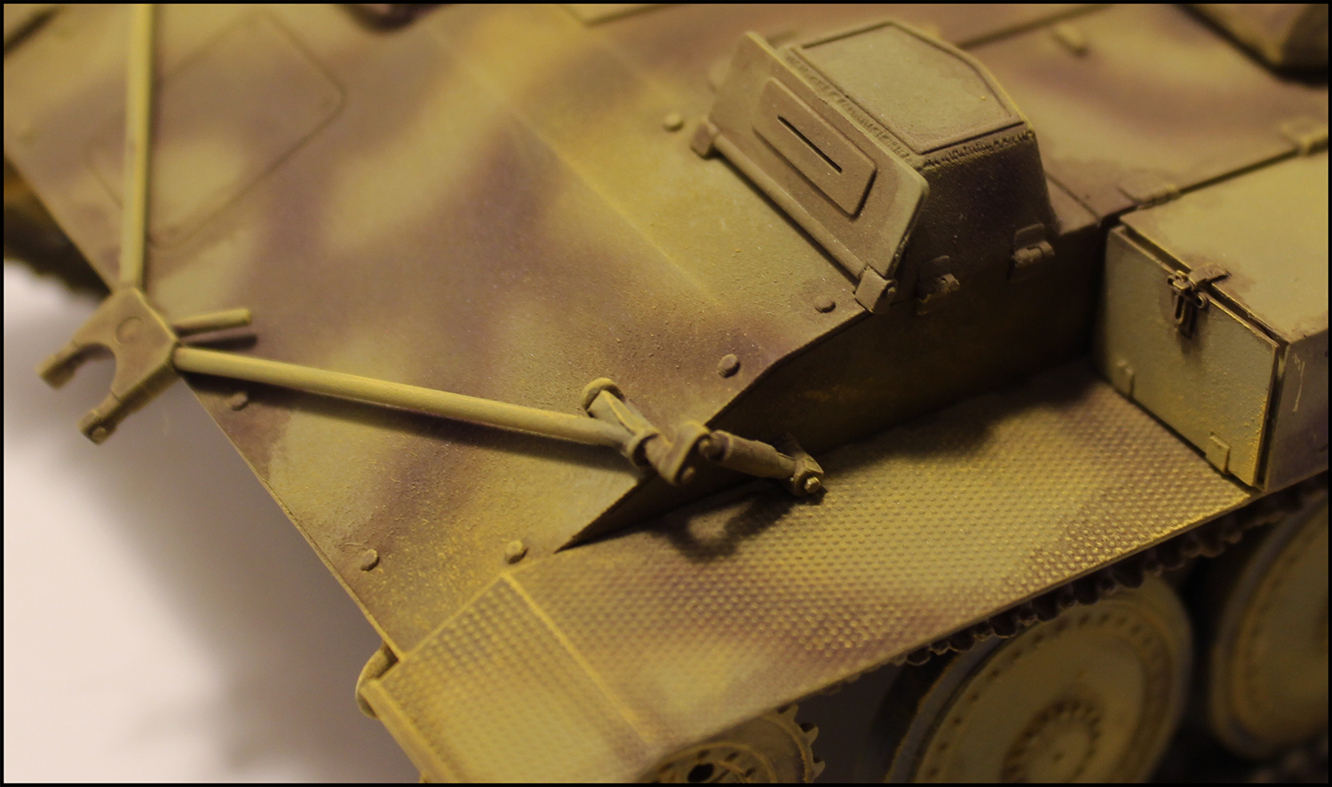 Использовал акриловые краски Tamia,разбавляя растворителем той же марки.Наносил смывку Mig(Brown wash) и пигмент.