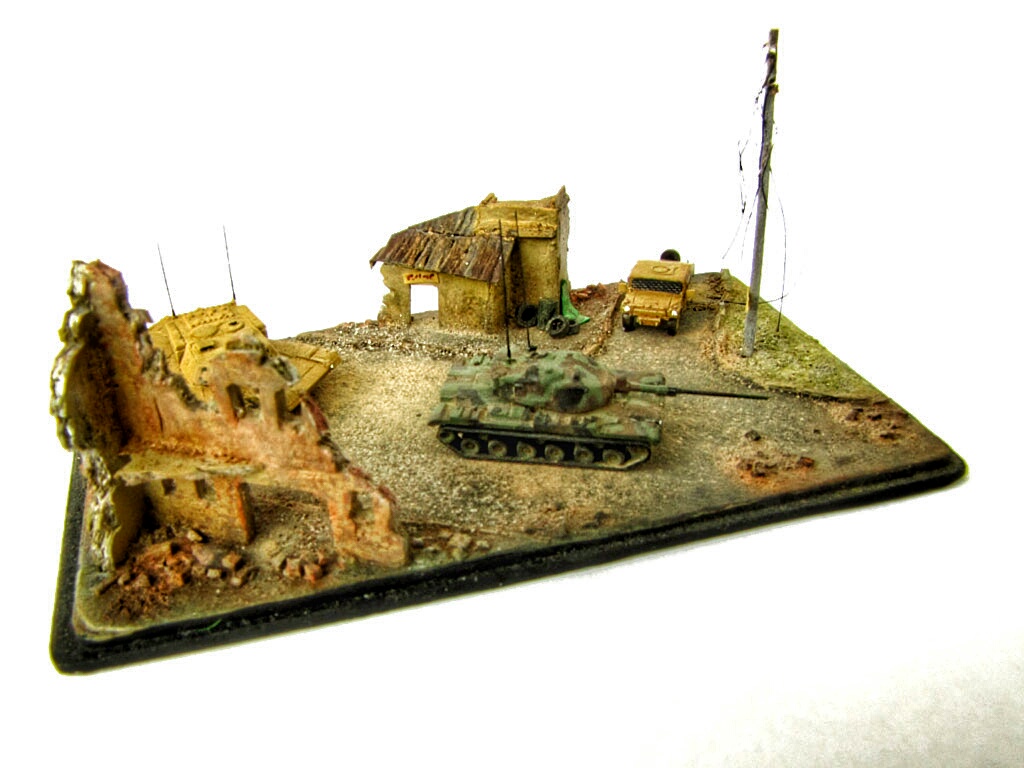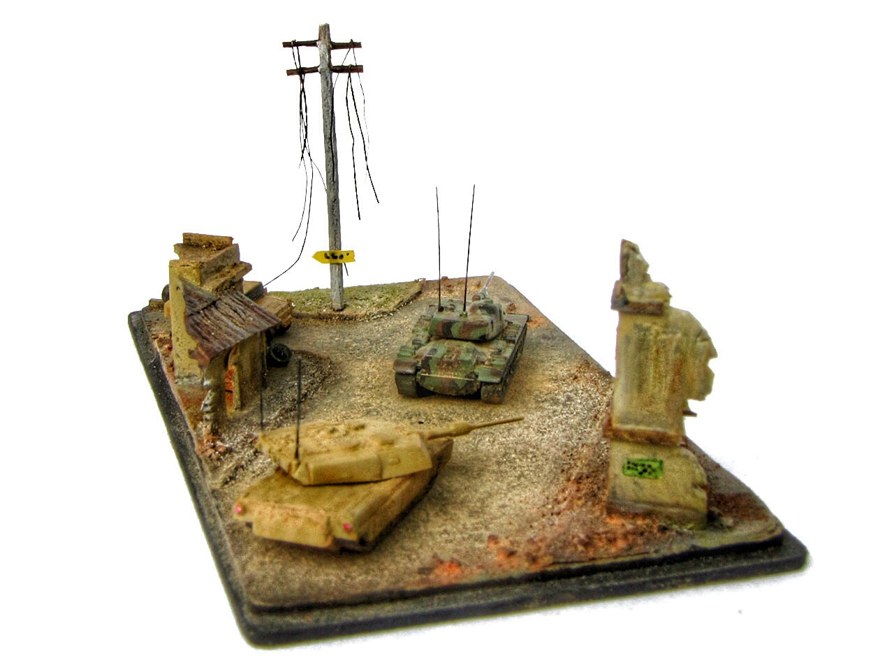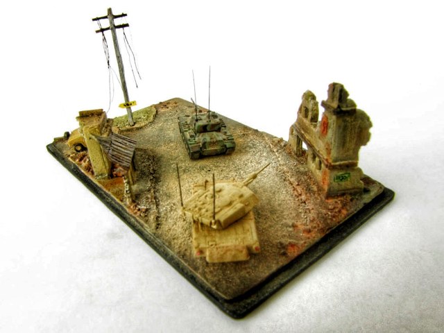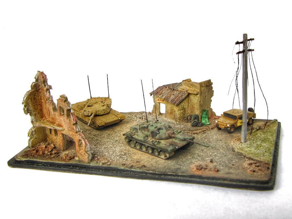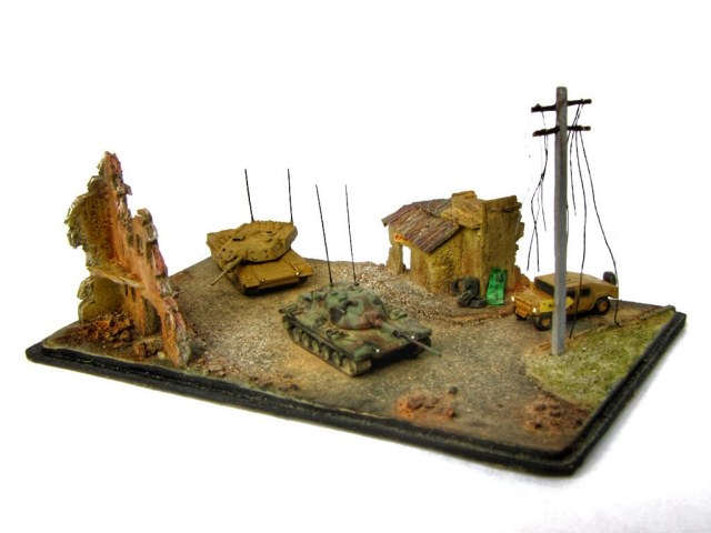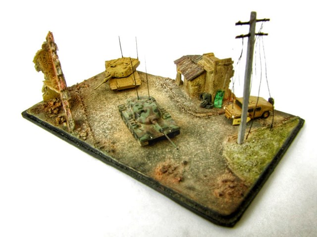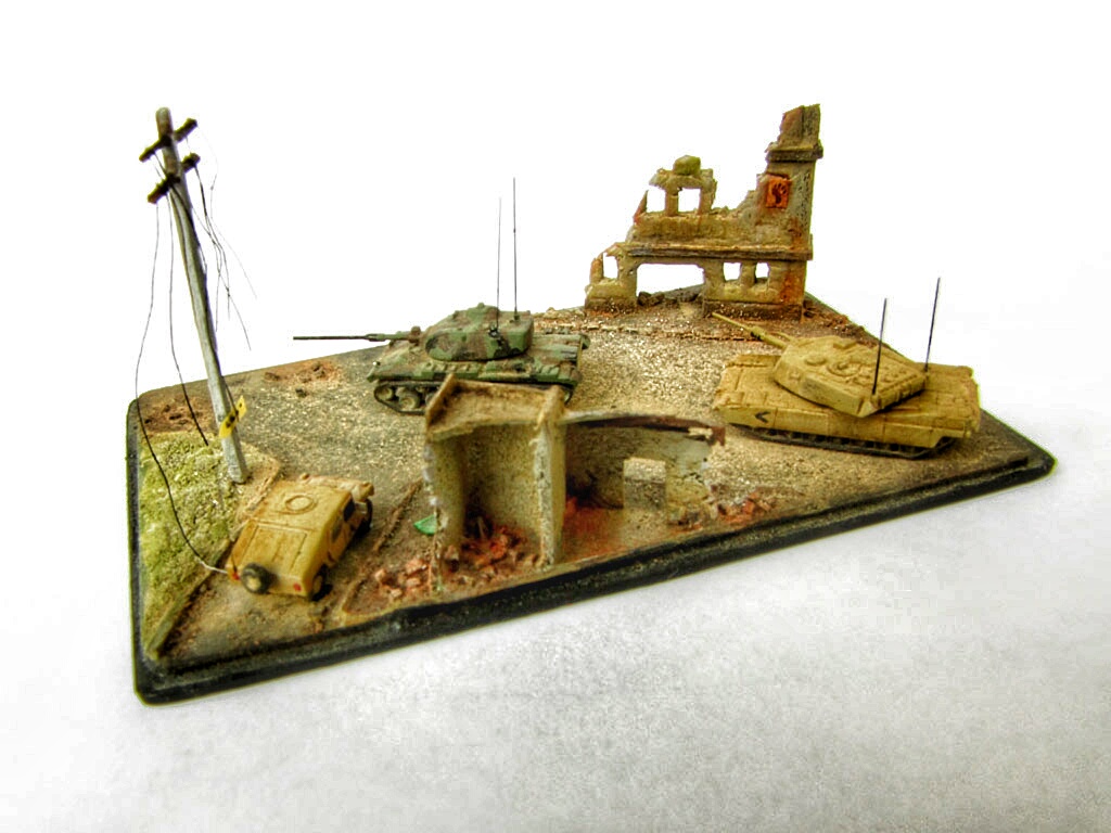 Все строения, битый кирпич и диван, спрятавшийся в руинах дома рядом с хамви, выполнены из пищевого полистирола от упаковок различных продуктов.
