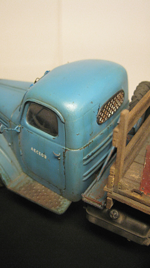 Отличный Зис!,С этими колесами сооооооовсем другой вид!,Очень понравился кузов(платформа),мелочи понравились,ручки дверей,зеркало.Единственное на мой взгляд решетки на фарах и заднем стекле все же крупноваты,может стоило проволоку по тоньше взять?