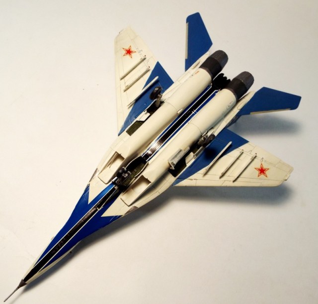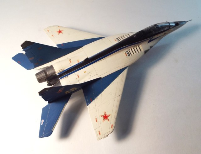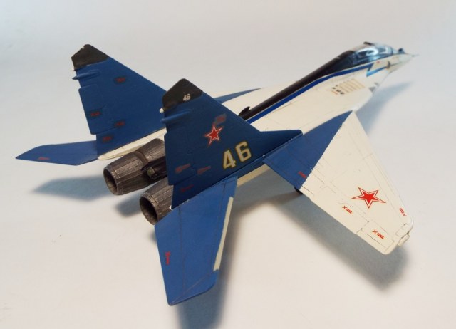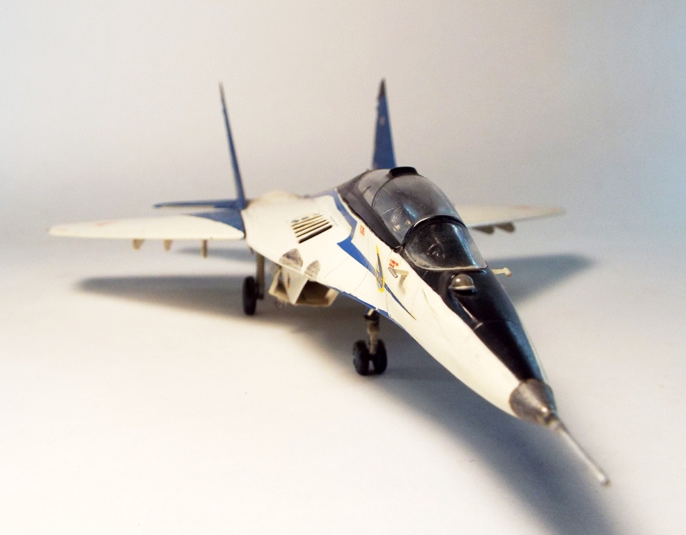 доброго времени суток,друзья! Хочу напомнить,что 6-го мая праздник у нашей пилотажной группы «Стрижи́» — авиационная группа высшего пилотажа Военно-воздушных сил России. Была сформирована 6 мая 1991 года на базе 234-го гвардейского Проскуровского авиаполка из лучших лётчиков подмосковной авиабазы Кубинка. Входит в состав Центра показа авиационной техники имени И. Н. Кожедуба. Выполняет групповой и одиночный пилотаж на многоцелевых высокоманевренных истребителях МиГ-29. Сама модель моя, конечно заслуживает раздел песка или если точьнее- ретро.Собрал я её очень давно,красил кистью,декали без футуры и лака.Да и сама модель кроме краски и клея не испытывала натисков химии.Суть показа именно к юбилею СТРИЖЕЙ! Спасибо за внимание!