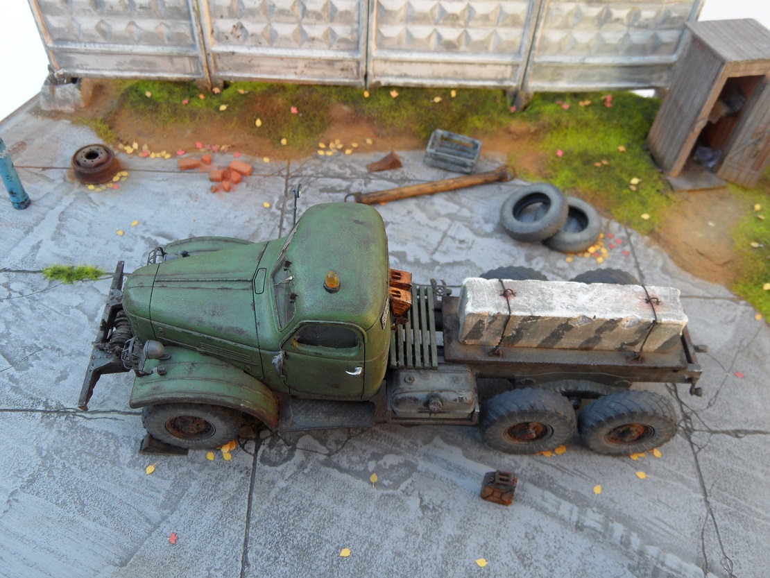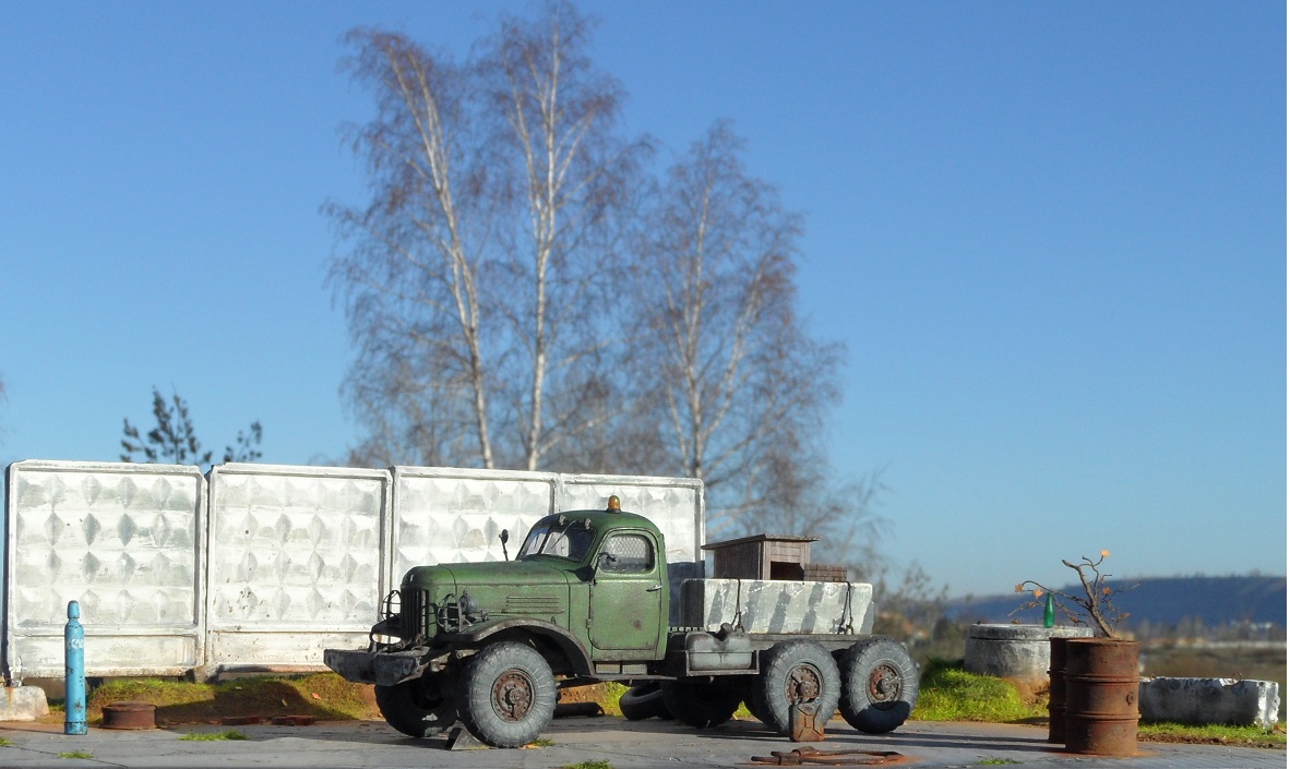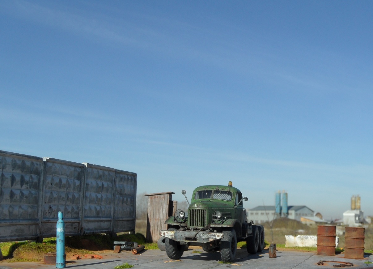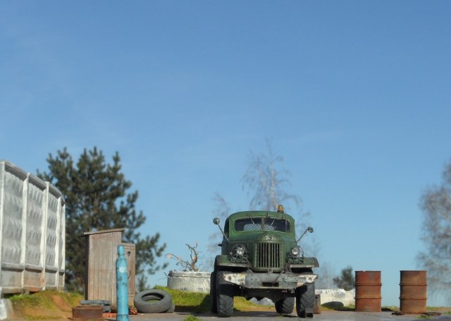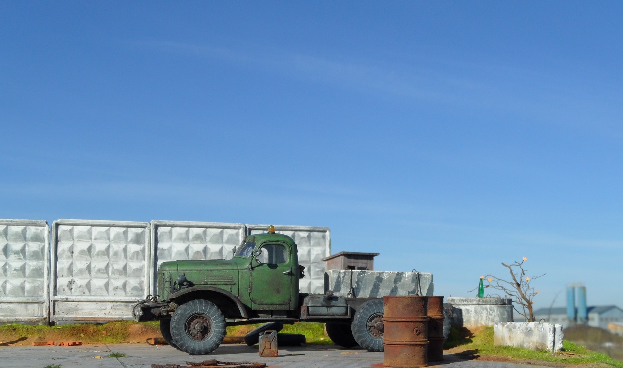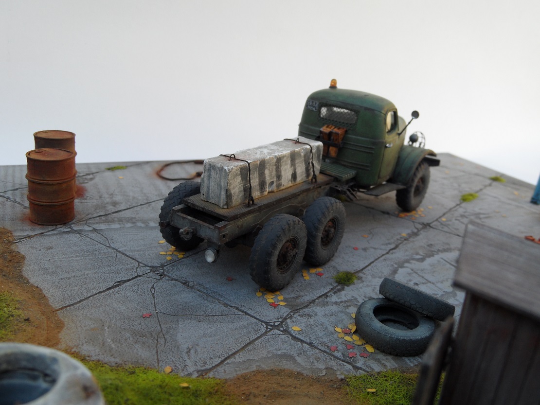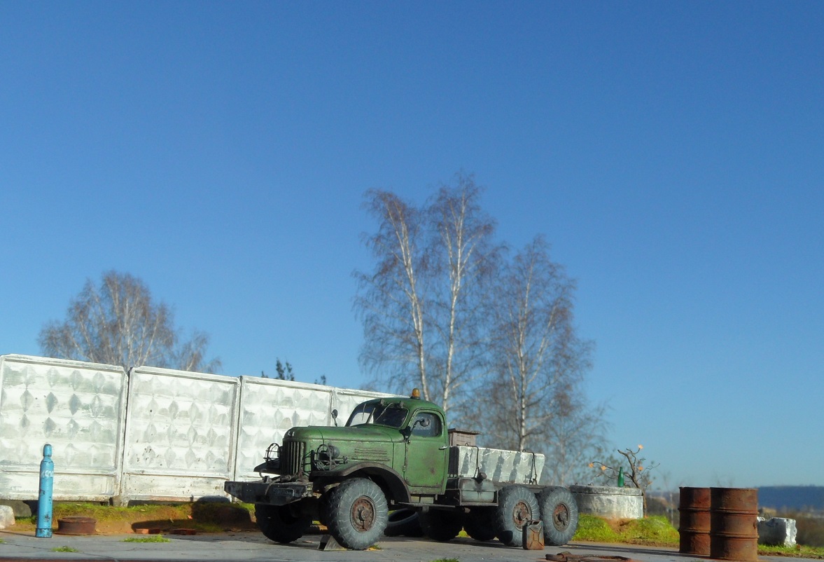 Класс! зилок и обстановка вокруг очень похожа на реальную! по поводу баллона: пусть он будет списанным, чтоб вопросов не возникало, место для гопников тоже здорово получилось, можно было только немного забор подкоптить от спаленной покрышки.