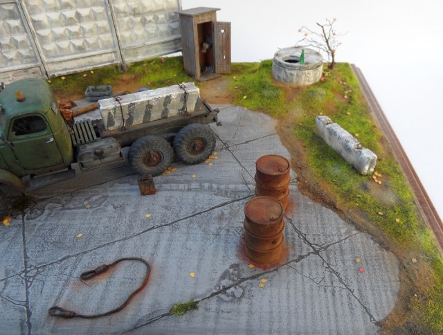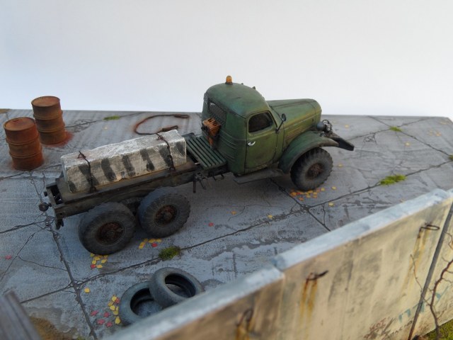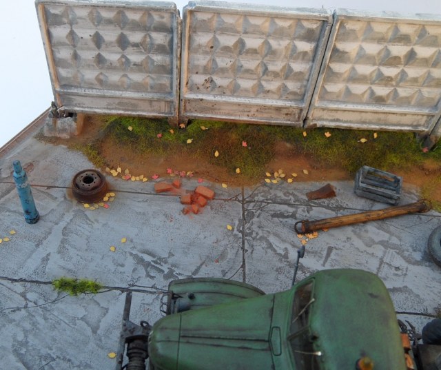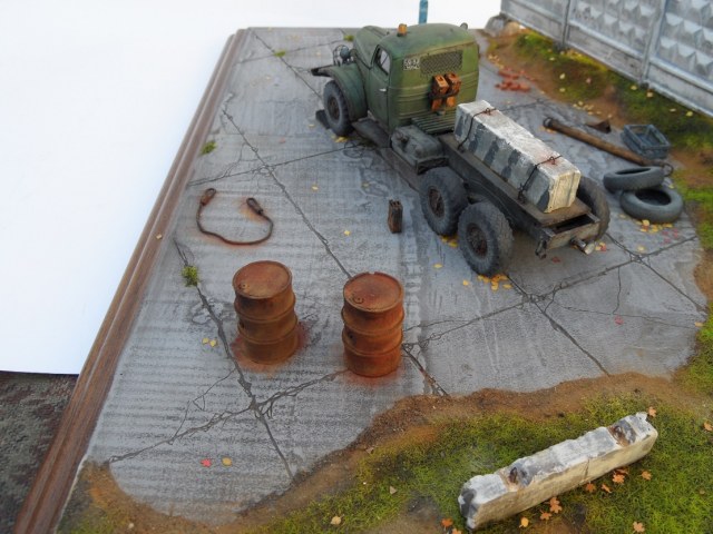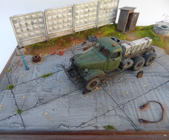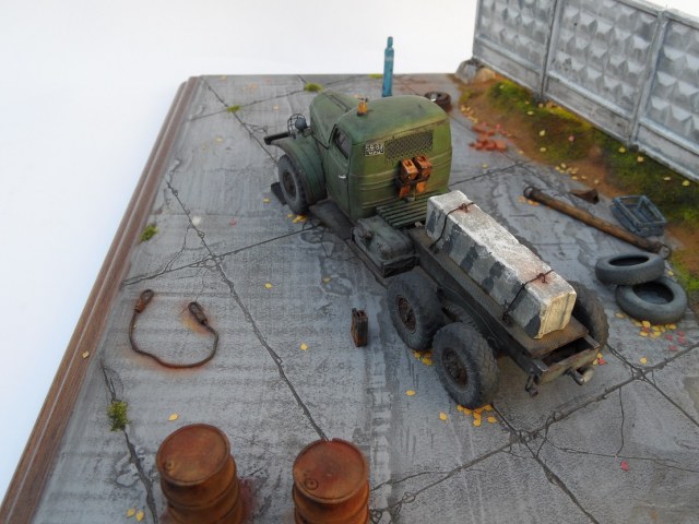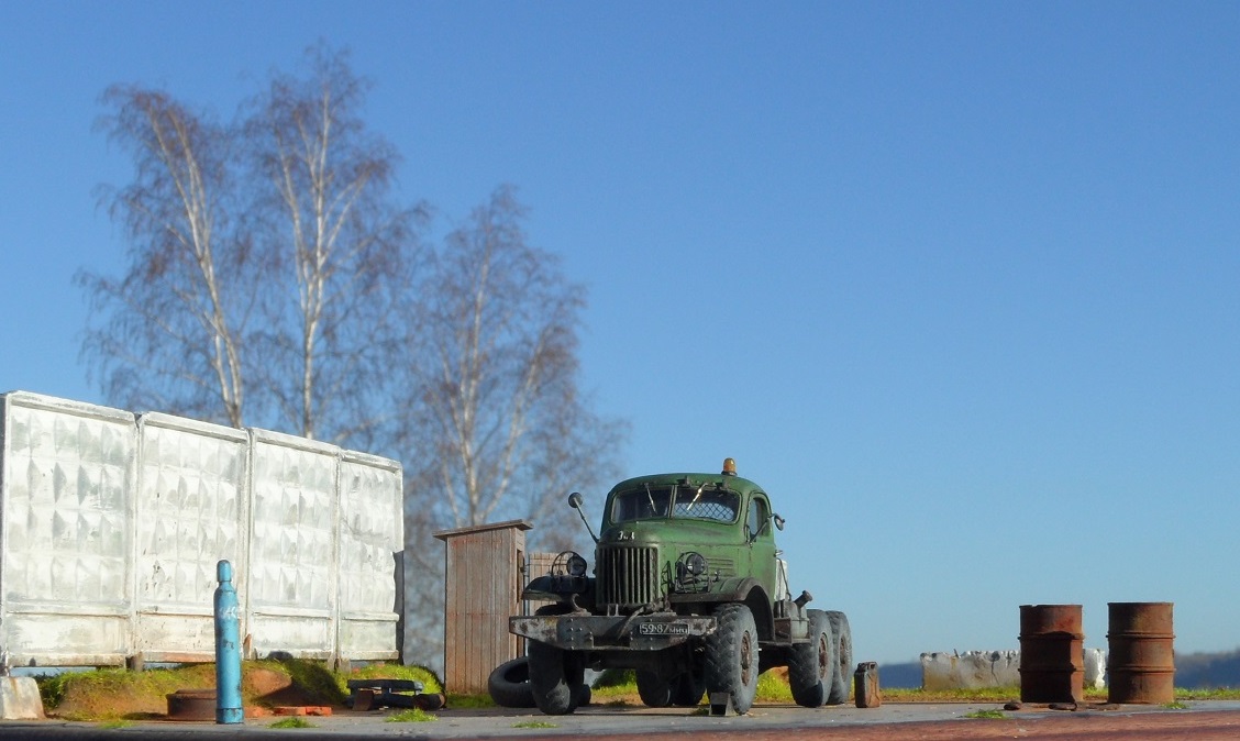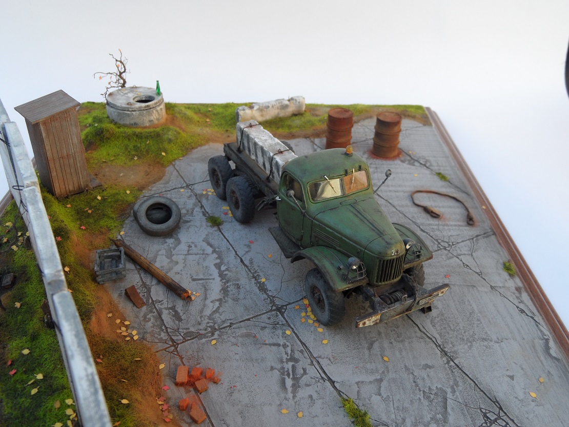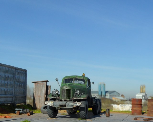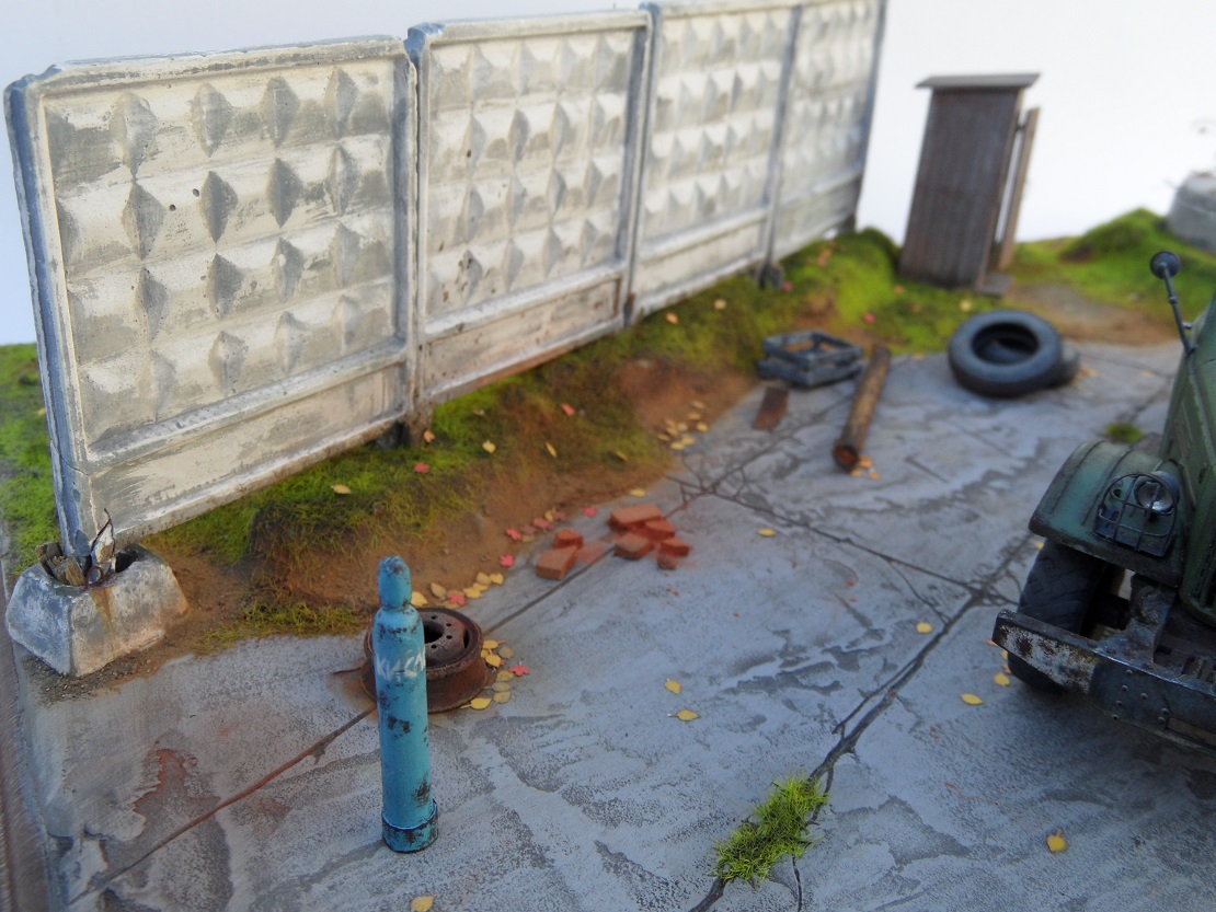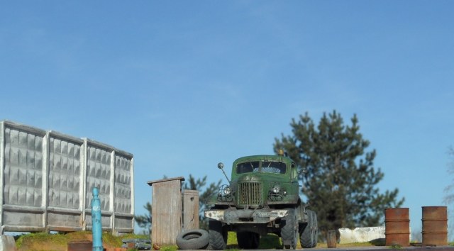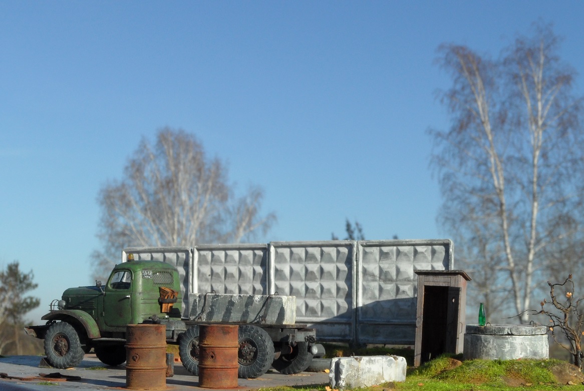 Класс! зилок и обстановка вокруг очень похожа на реальную! по поводу баллона: пусть он будет списанным, чтоб вопросов не возникало, место для гопников тоже здорово получилось, можно было только немного забор подкоптить от спаленной покрышки.