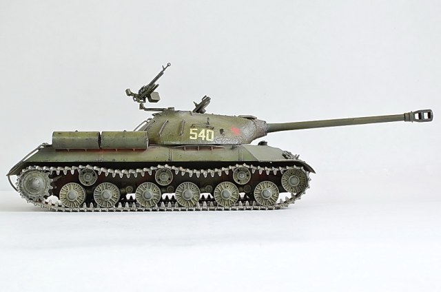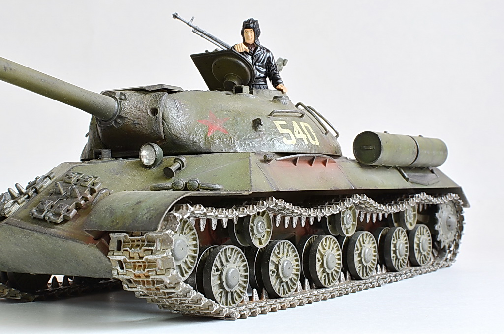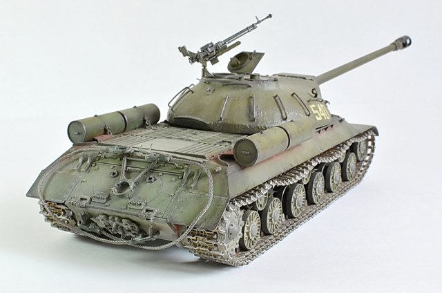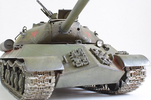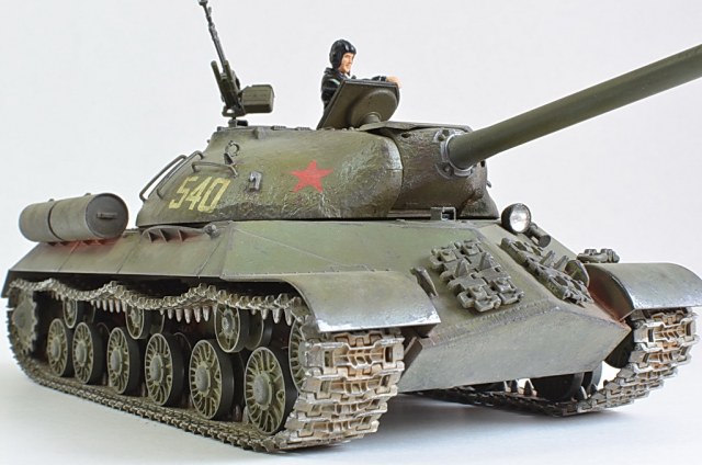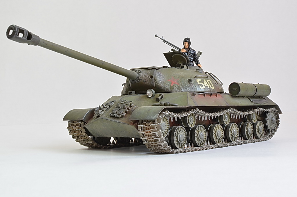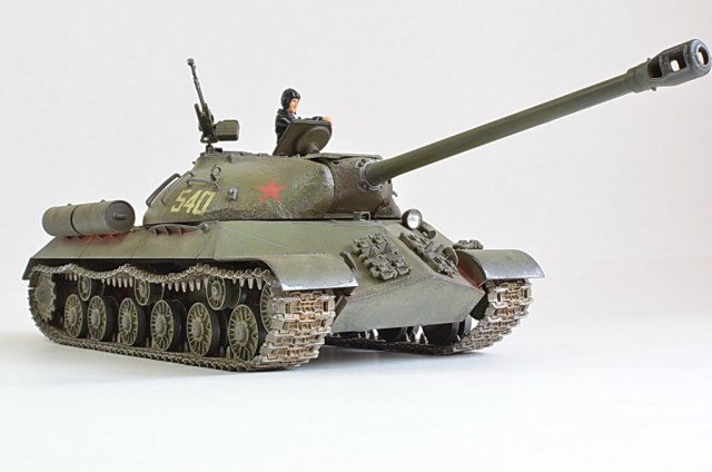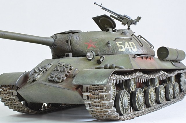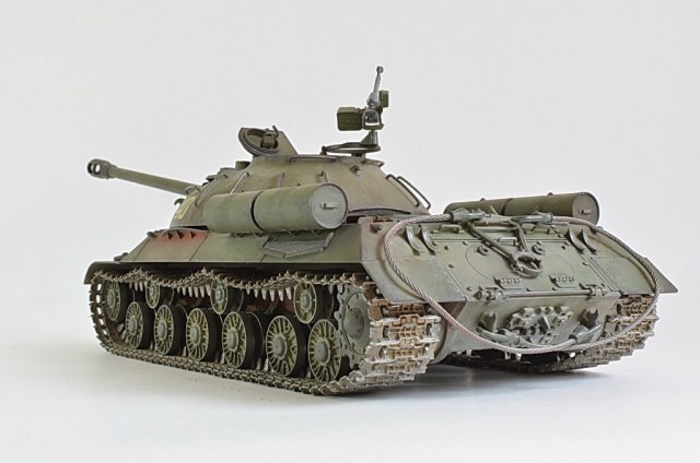 Снимите модель нормально, а то она то в розовых, то в зеленых тонах. Установите вручную баланс белого, или поправьте в редакторе. И название почему не написать по-русски "ИС-3"? Советский танк, какая нам разница, как там какие-то японцы Сталина называют.