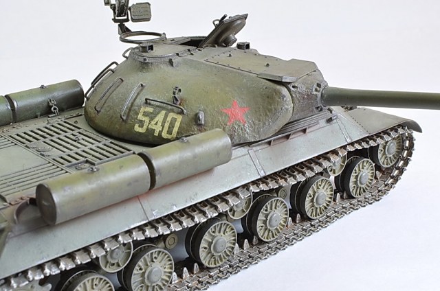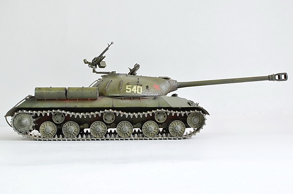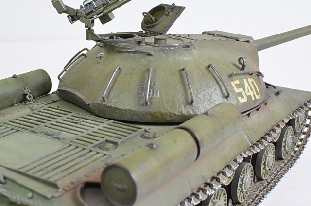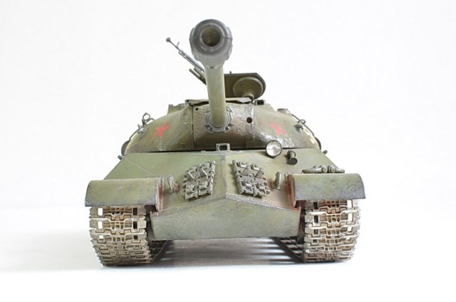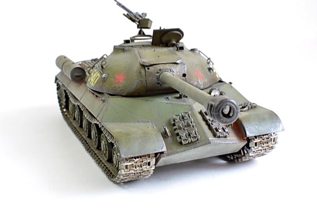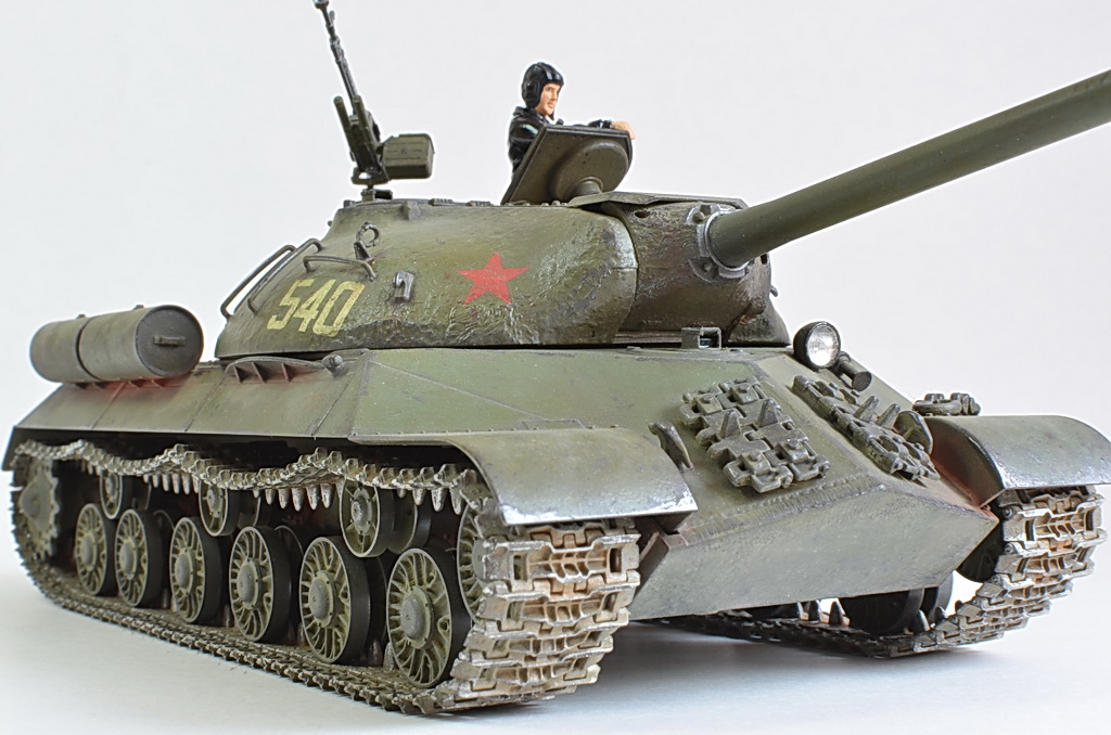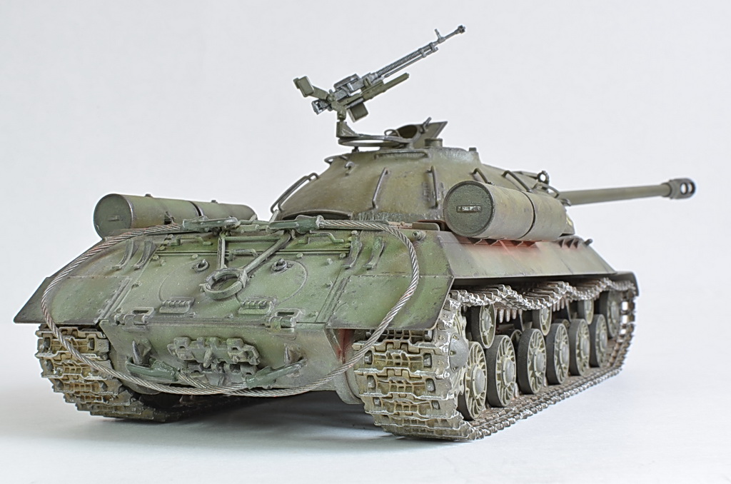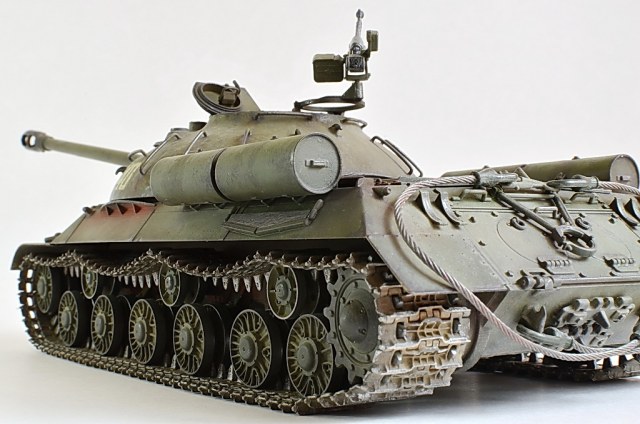 Снимите модель нормально, а то она то в розовых, то в зеленых тонах. Установите вручную баланс белого, или поправьте в редакторе. И название почему не написать по-русски "ИС-3"? Советский танк, какая нам разница, как там какие-то японцы Сталина называют.