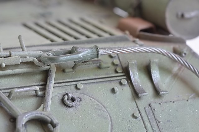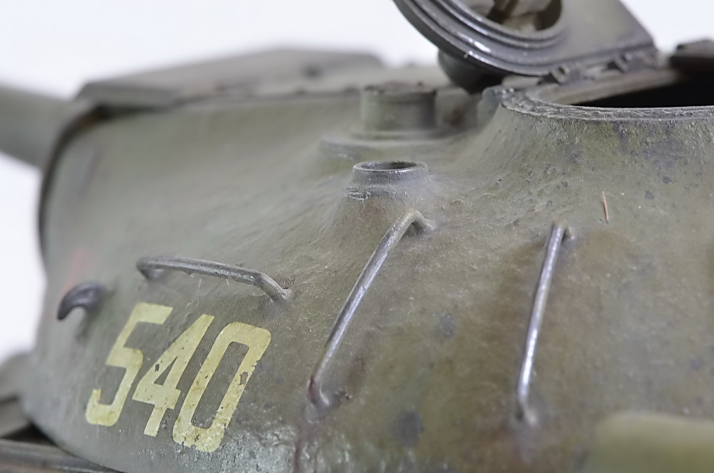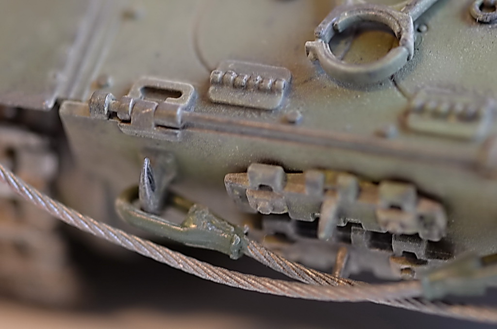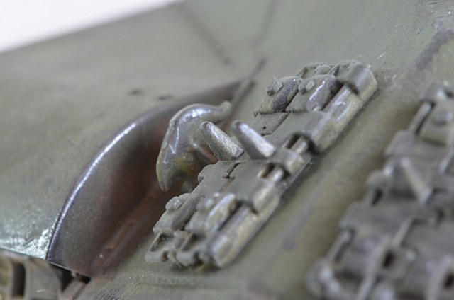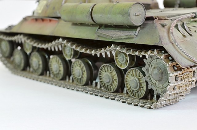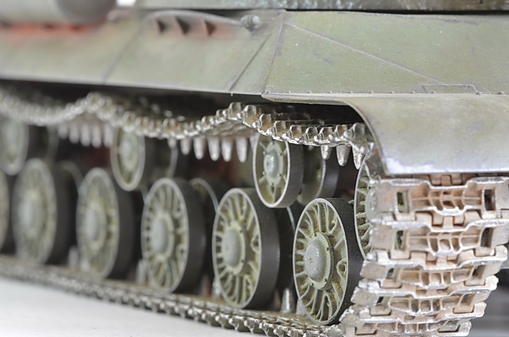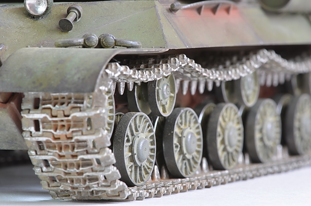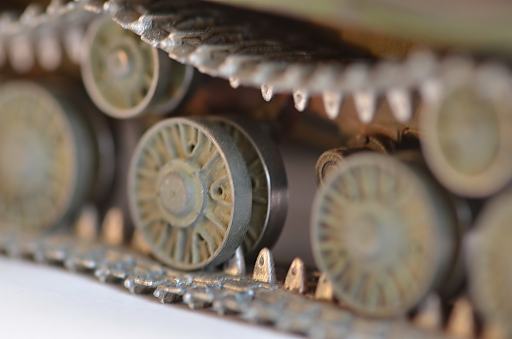 После того как установил гусеницы, показалось что нужно было убрать один трак, слишком провис большой. Посмотрел кучу фото в Интернете, были танки и с большим провисом, переделывать не стал. Исторической привязки нет, опыта пока нет с применением пигментов и модуляции.