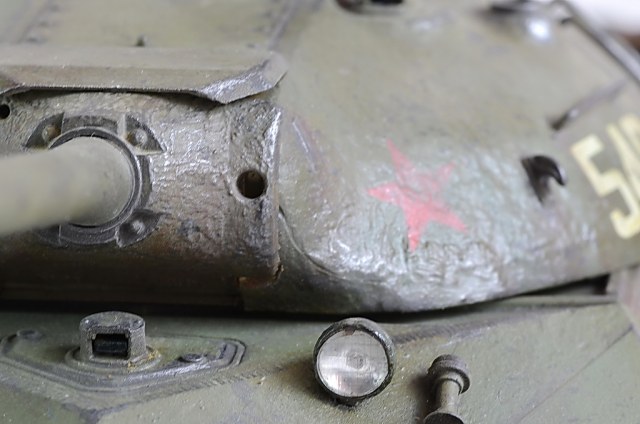 Щель не могу найти, многие моделисты антенну не ставят, ну и я решил её не ставить, к тому же танк с антенной не помещался в стеллаж. Я думаю антенна не проблема, кусок струны прикрепил и всё. Почему ДШК серебриться не могу понять, в живую нормально, на фото серебро