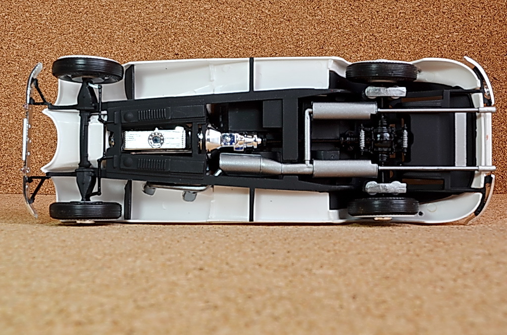 Корпус автомобиля красил Тамиевской белой краской, стравленной из баллона в три захода, после высыхания покрытие лаком TS-13, стравленным из баллона также в три захода, потом полировка Тамиевскими абразивами и нанесение блеска. Результат на фото.