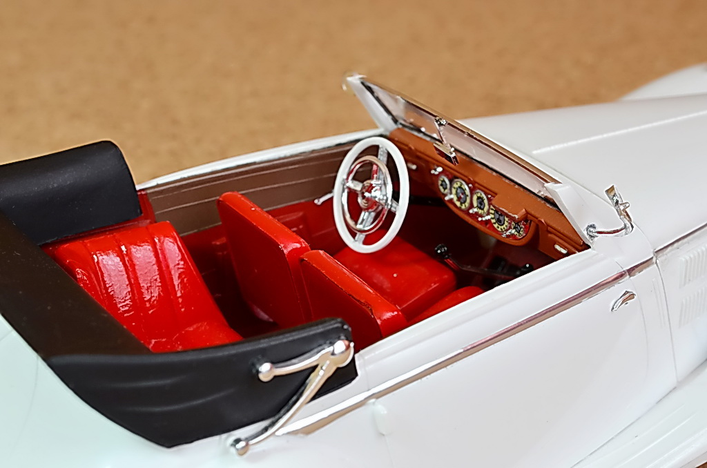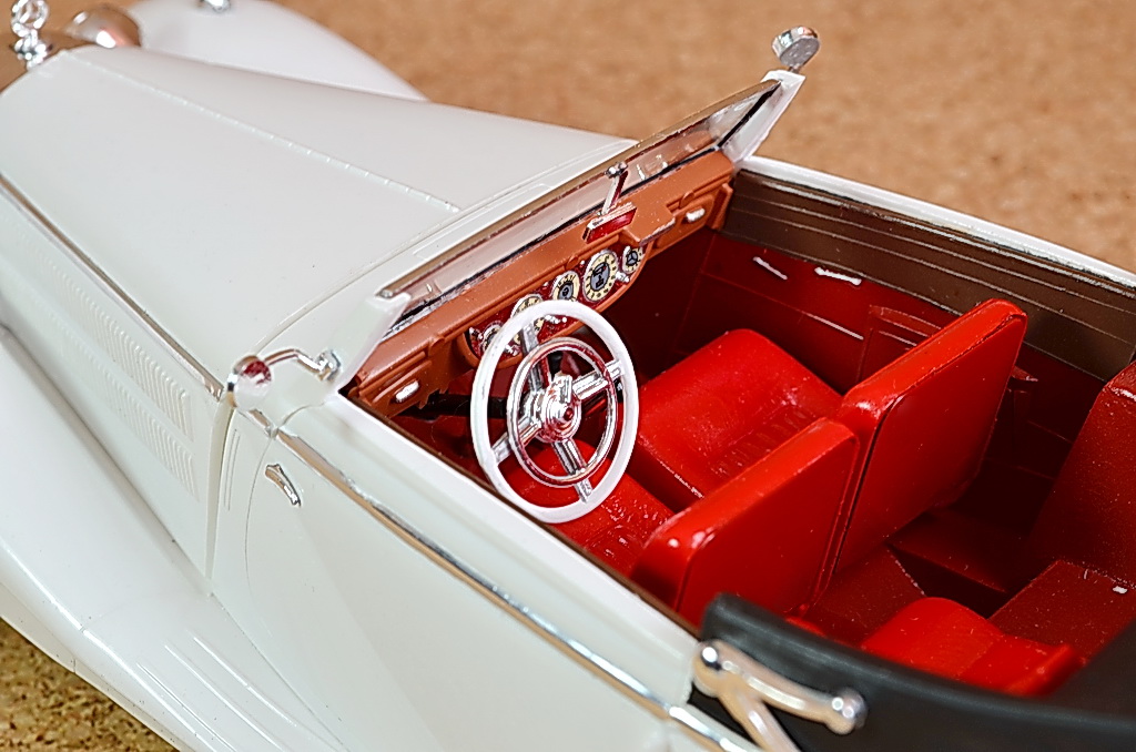 Опять же как и в предыдущей фотосессии кузов теряется. Блестит или нет не понять. Салон смотрится красиво, но мне кажется излишне залит лаком. Сидушки под кожу наверное лучше красить сатиновой(полуматовой) краской, или матовой с последующей лакировкой тонким слоем плуматового лака.
