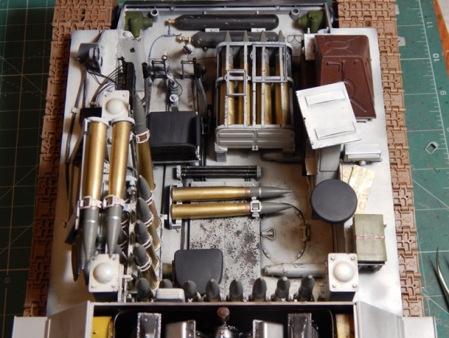 Потрясающая работа! Насколько я помню, ТРЕТЬЯ за всё время на Каропке с полным интерьером - причём теперь охвачены все масштабы; я делал в 35-ом, была в 72-ом, и вот - Ваш исполин! Из придирок - (нисколько не умаляющих масштаб работы) - отсутствие в боекомплекте тупоголовых бронебойных и отсутствие маркировки на гильзах